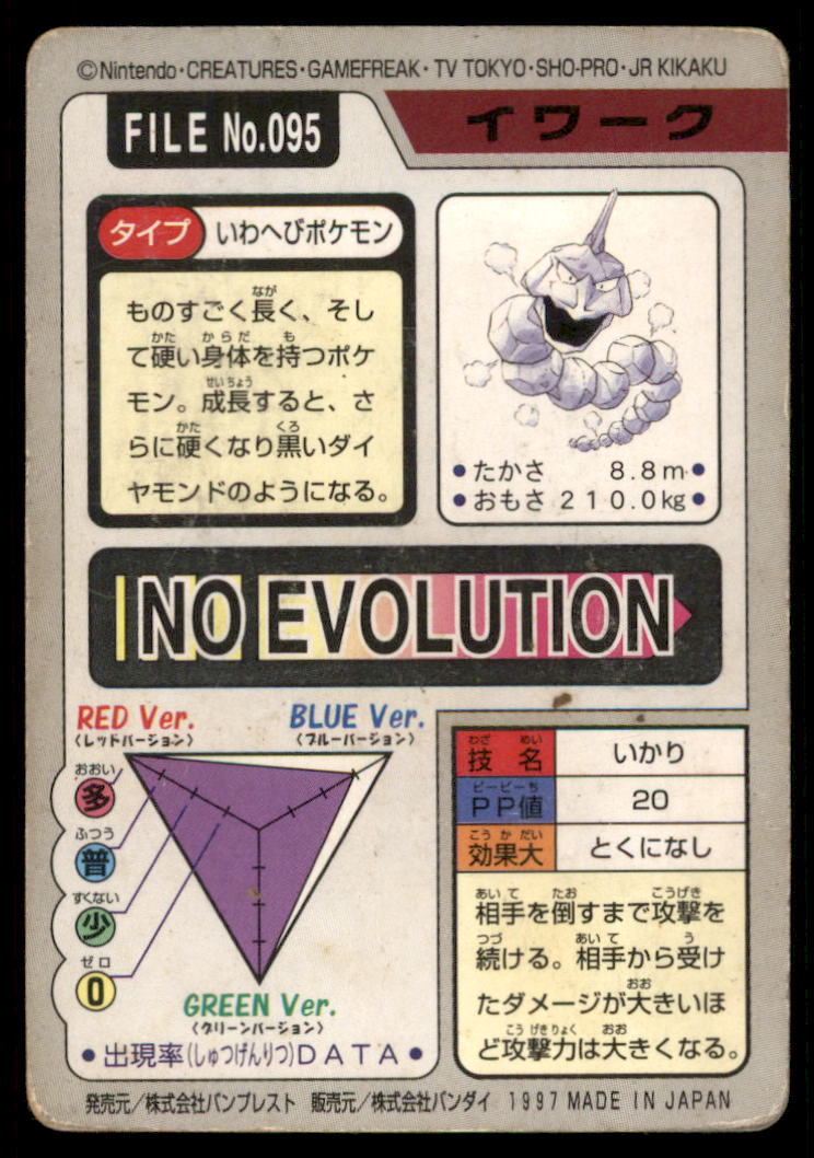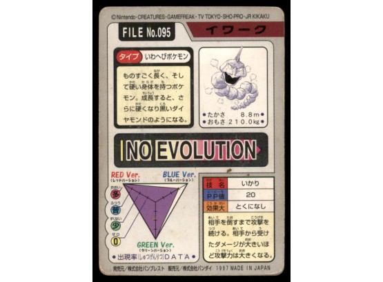 Onix Bandai Carddass Holo 1997 Japanese Pokemon Card