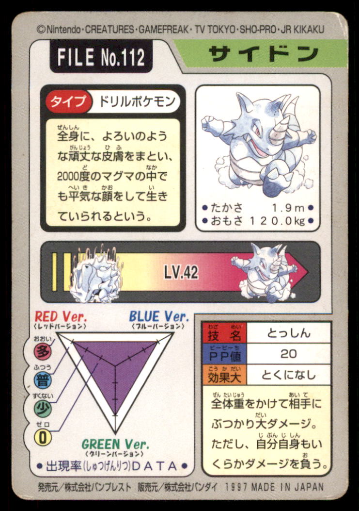 Rhydon Bandai Carddass Holo 1997 Japanese Pokemon Card