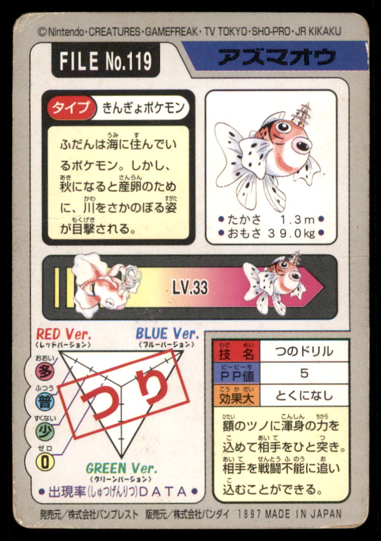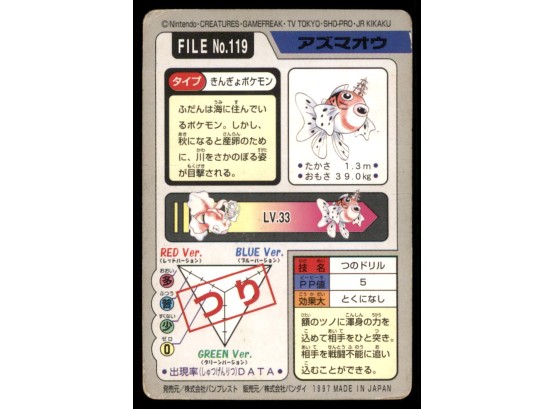 Seaking Bandai Carddass Holo 1997 Japanese Pokemon Card