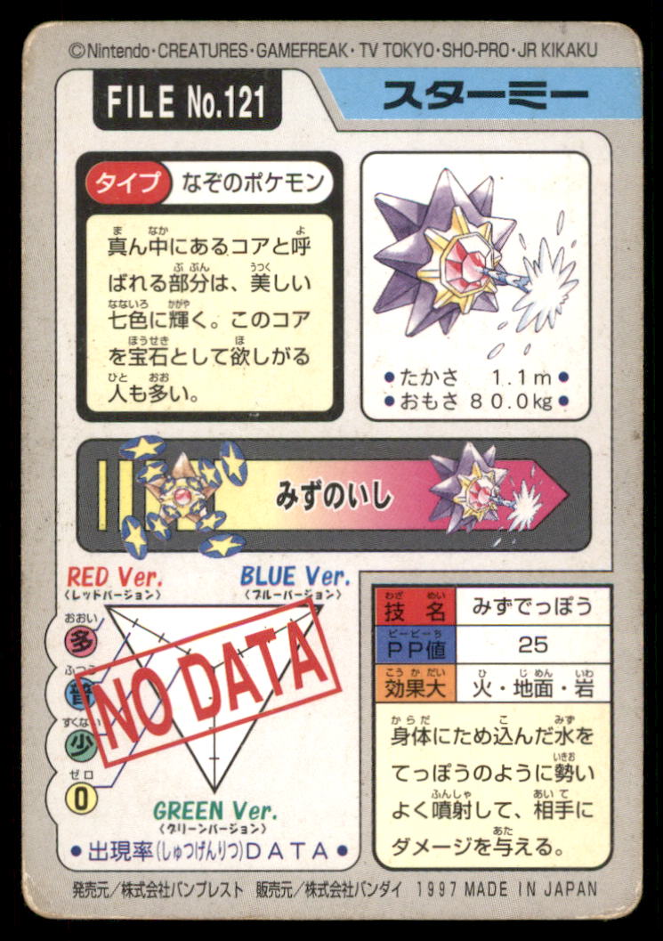 Starmie Bandai Carddass Holo 1997 Japanese Pokemon Card