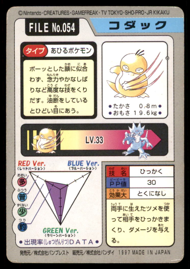 Psyduck Bandai Carddass Holo 1997 Japanese Pokemon Card