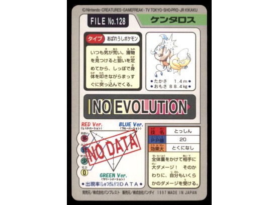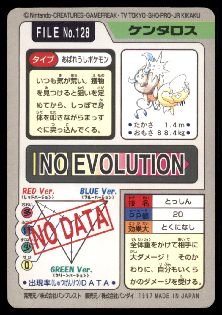 Tauros VS Psyduck Bandai Carddass Holo 1997 Japanese Pokemon Card