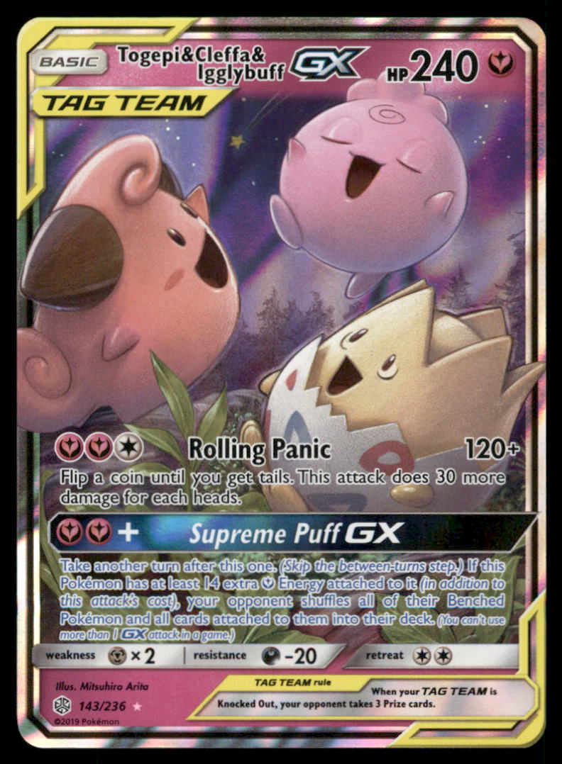 Togepi & Cleffa & Igglybuff GX SM - Cosmic Eclipse #143/236 Holo Pokemon Card