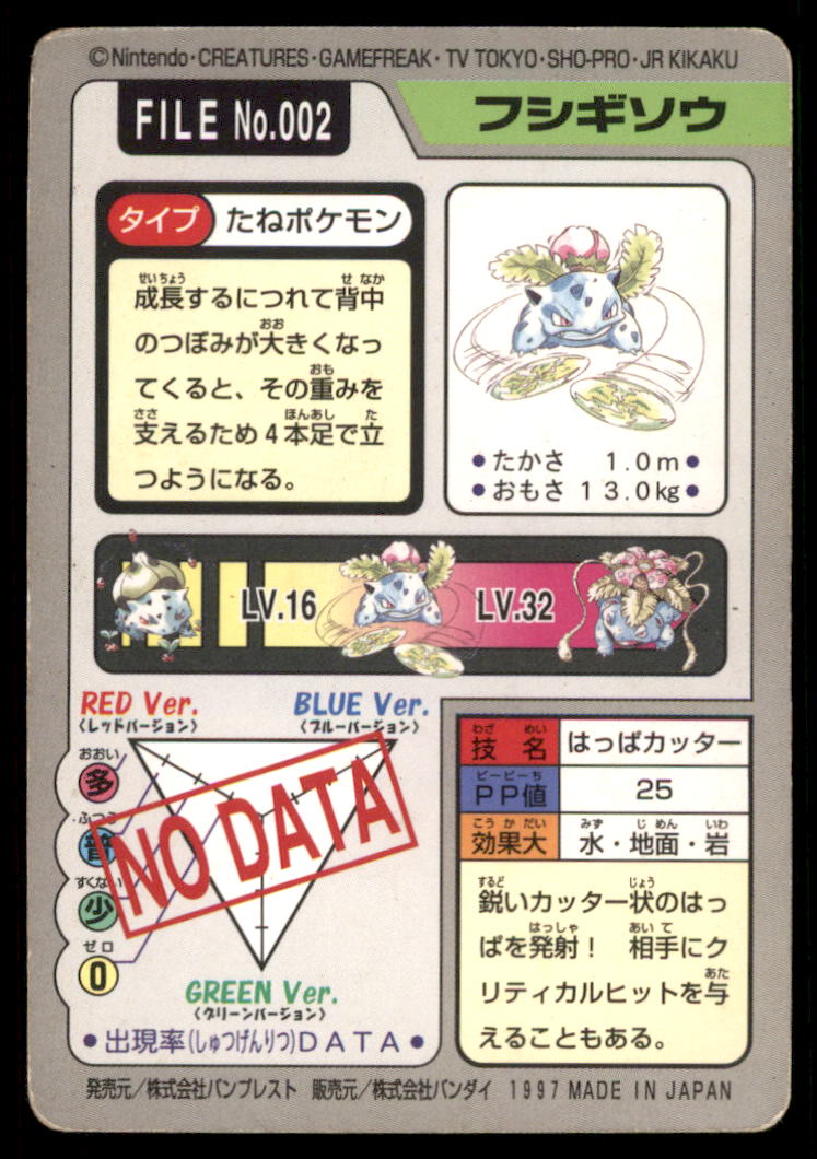 Ivysaur Bandai Carddass Holo 1997 Japanese Pokemon Card