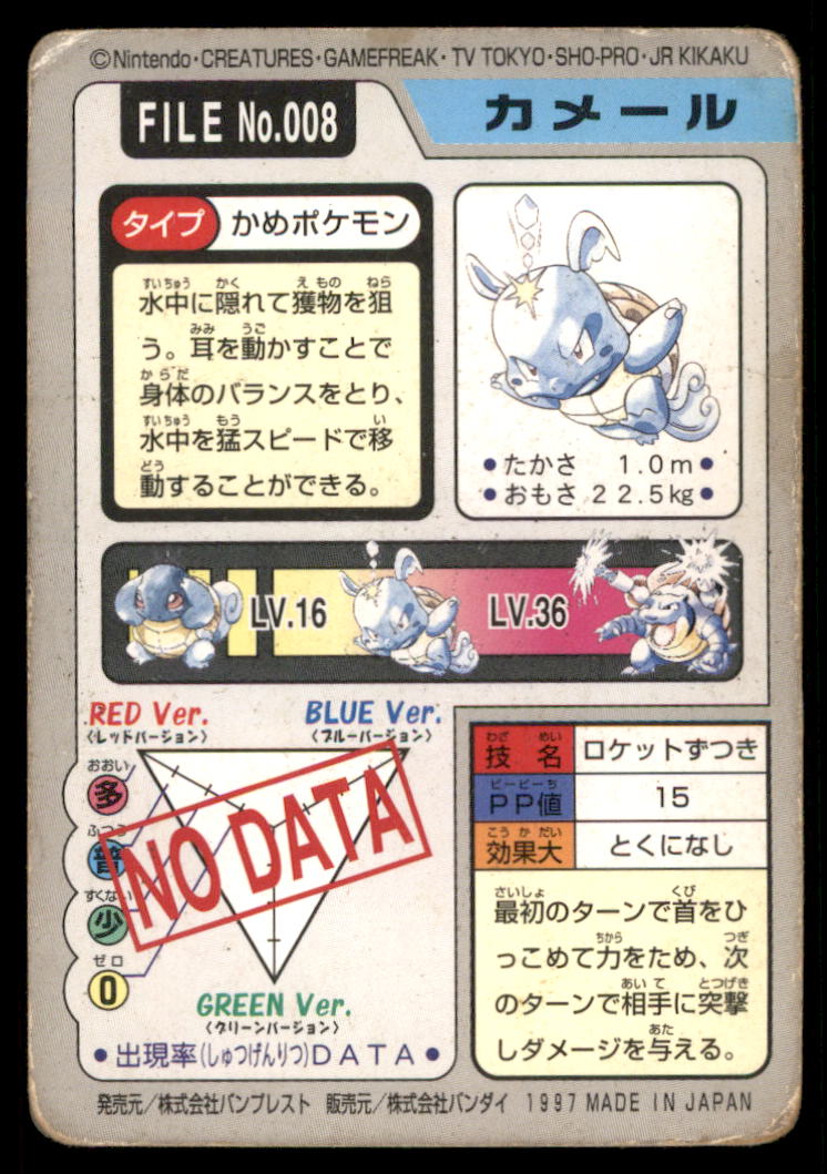 Wartortle Bandai Carddass Holo 1997 Japanese Pokemon Card