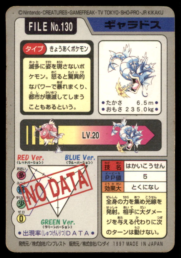 Gyarados Bandai Carddass Holo 1997 Japanese Pokemon Card