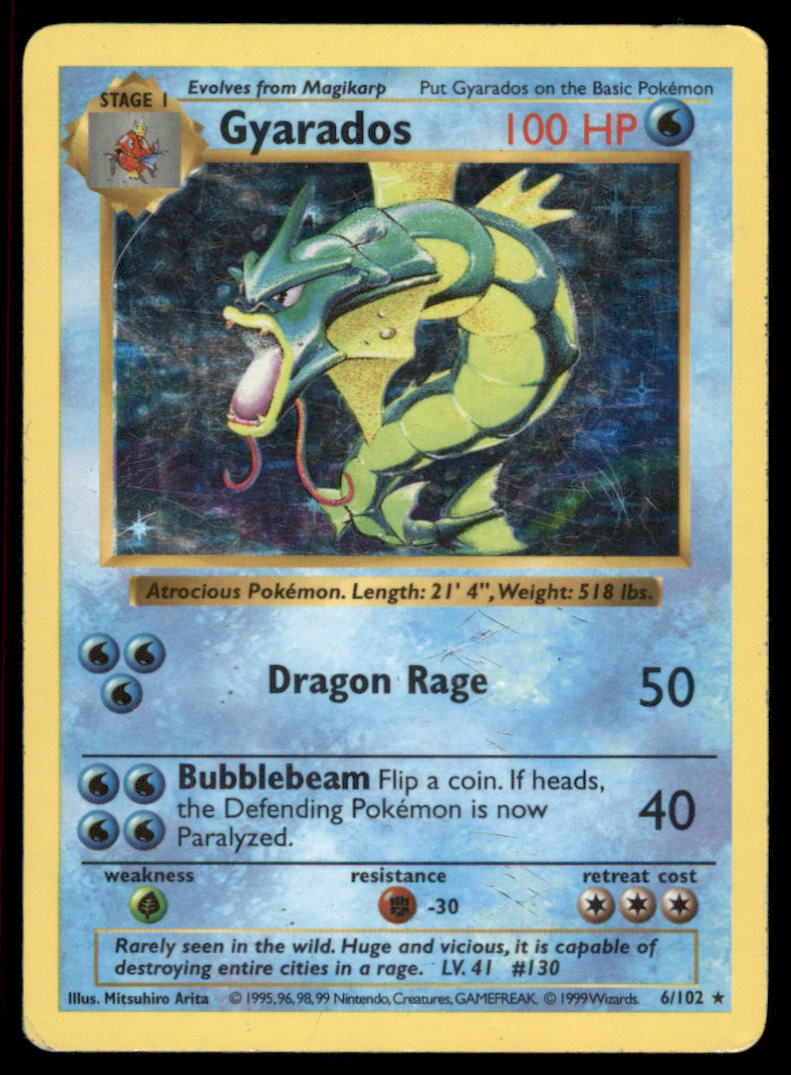 Gyarados Base Set (Shadowless) #006/102 Holo Pokemon Card