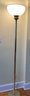 2 different types of floor lamps. One is an upward shining torchier that is 3 way and can really light up a room. The other is a downward facing lamp for more direct lighting. The finish on the bases are a little funky but both are in great working condition. The tall lamp measures 72" high and the base is about 12" round. The smaller one is 50" high and is only a one way light.
