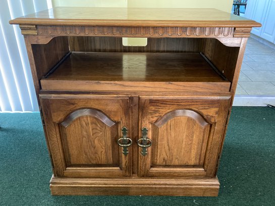 Small oak entertainment center with slide out drawer for your equipment, Storage below for your whatever....