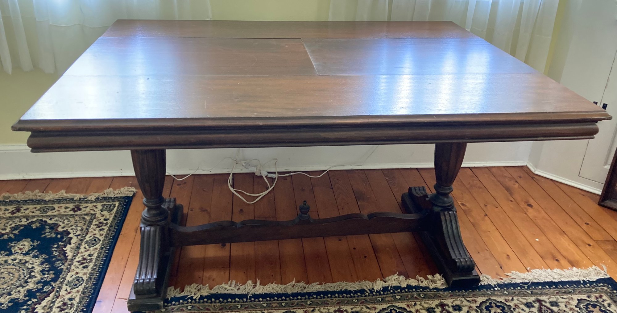 Cool table with butterfly leaves stored inside. The table can be used as a sofa table when closed or as a dining table when expanded. The leaf adds 16" to the width of the table.
