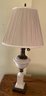 Beautiful white ceramic lamp in perfect working condition. Height is 33" and shade is 14" on the bottom. Could use a new shade but is ok as is.