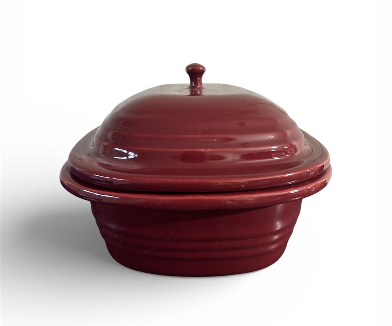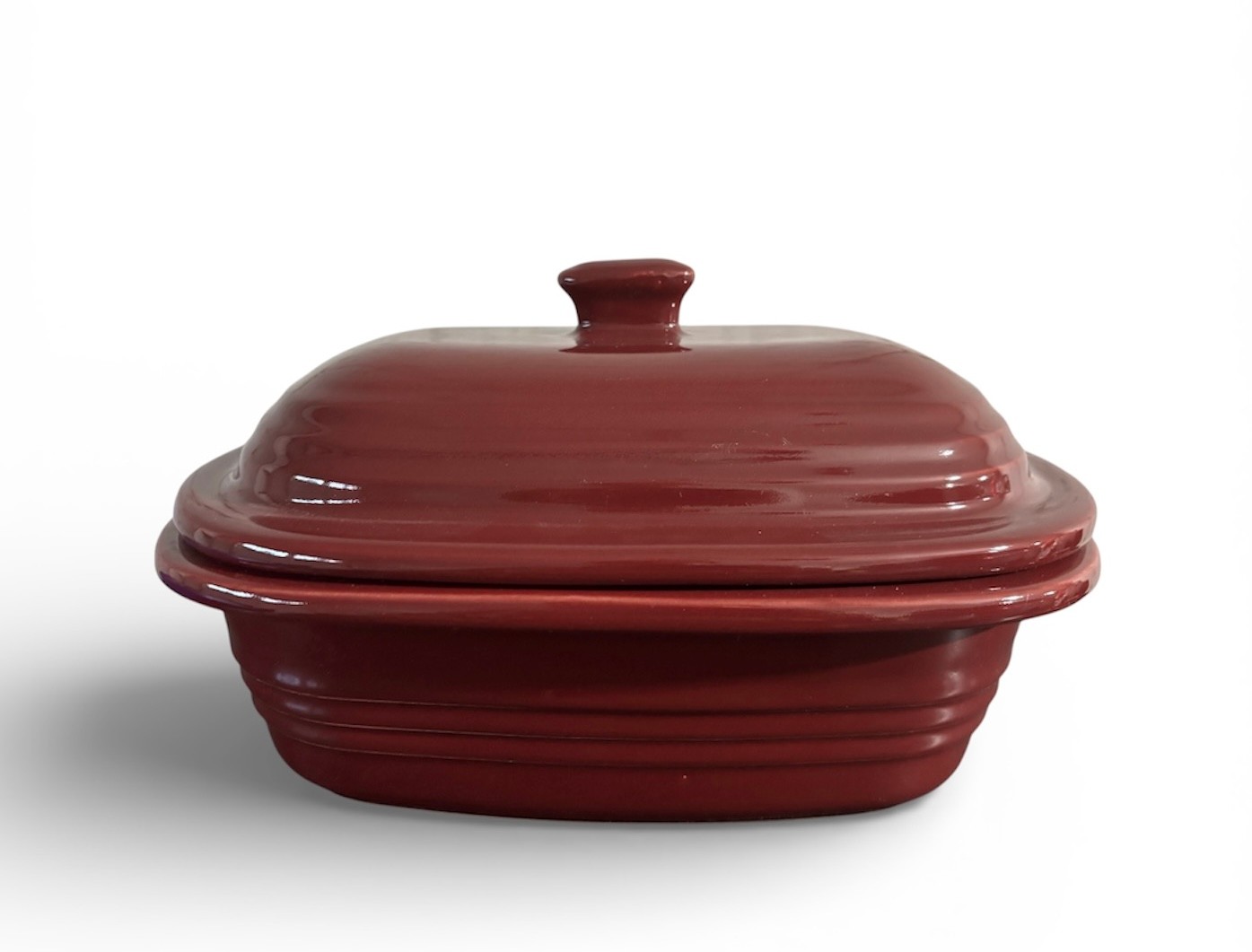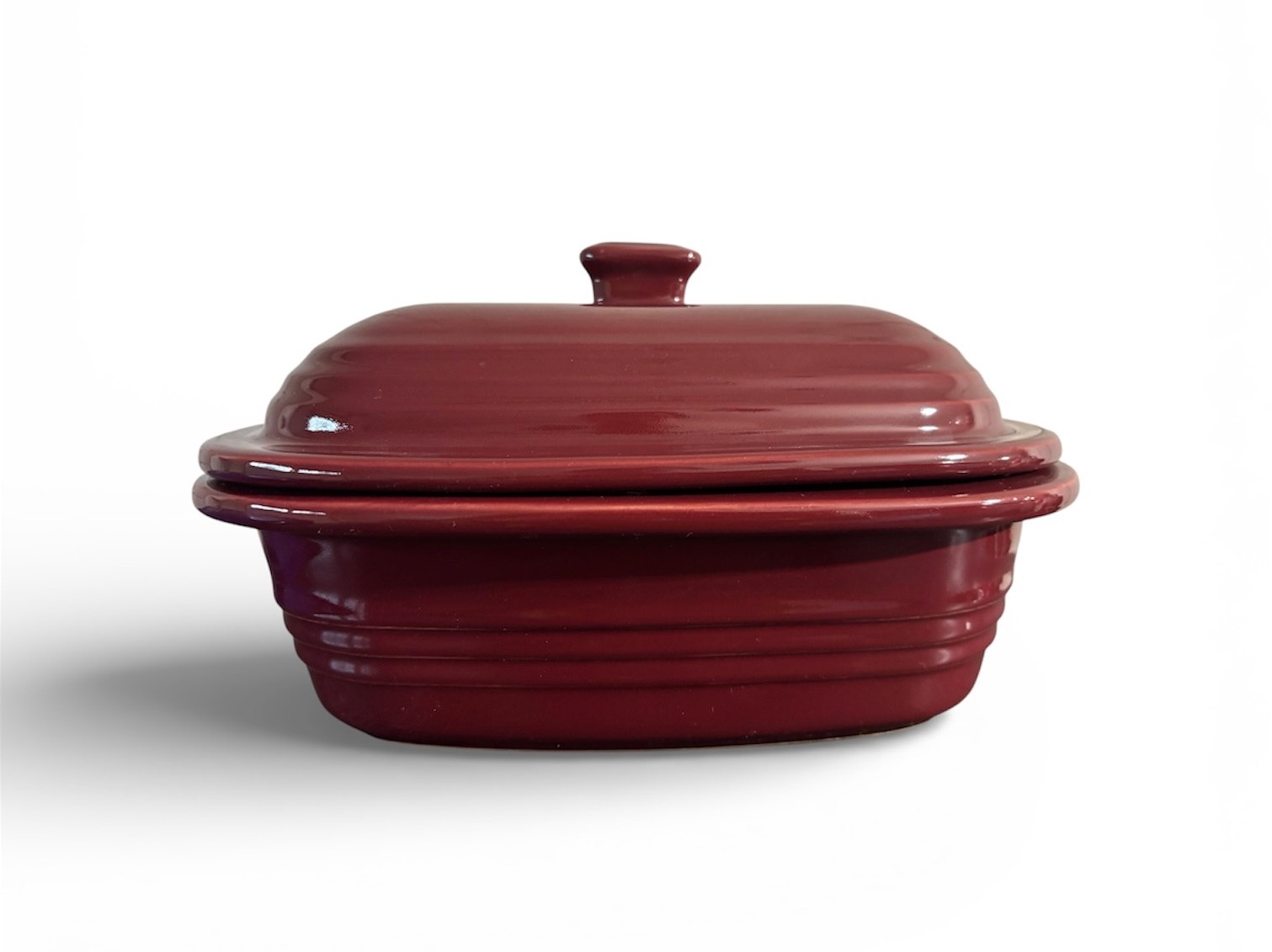 Brand new Pampered Chef Deep Covered Baker (Model 1321) in the Cranberry color. Versatile stoneware dish designed for roasting, baking, and making casseroles in both conventional ovens and microwaves.