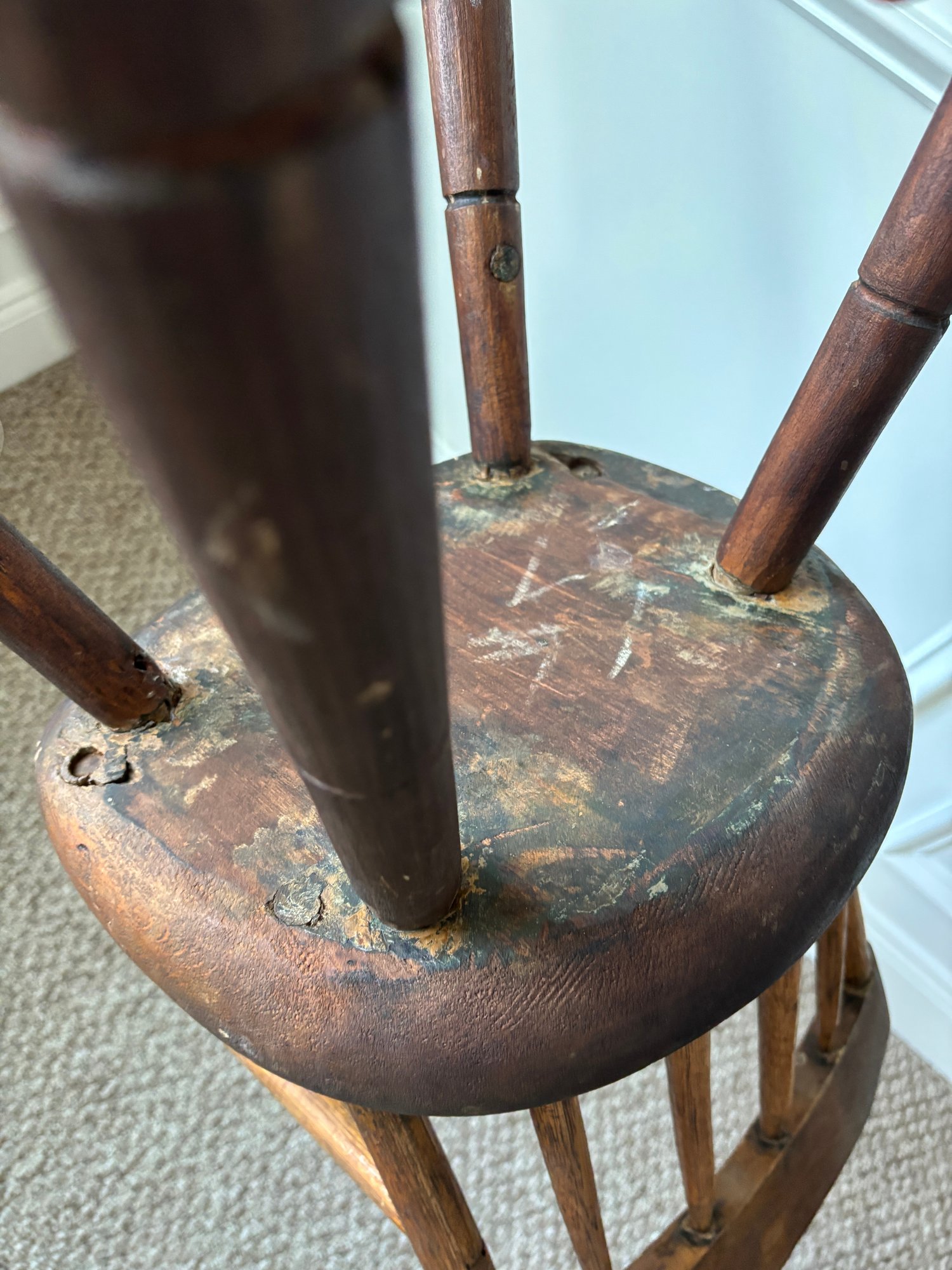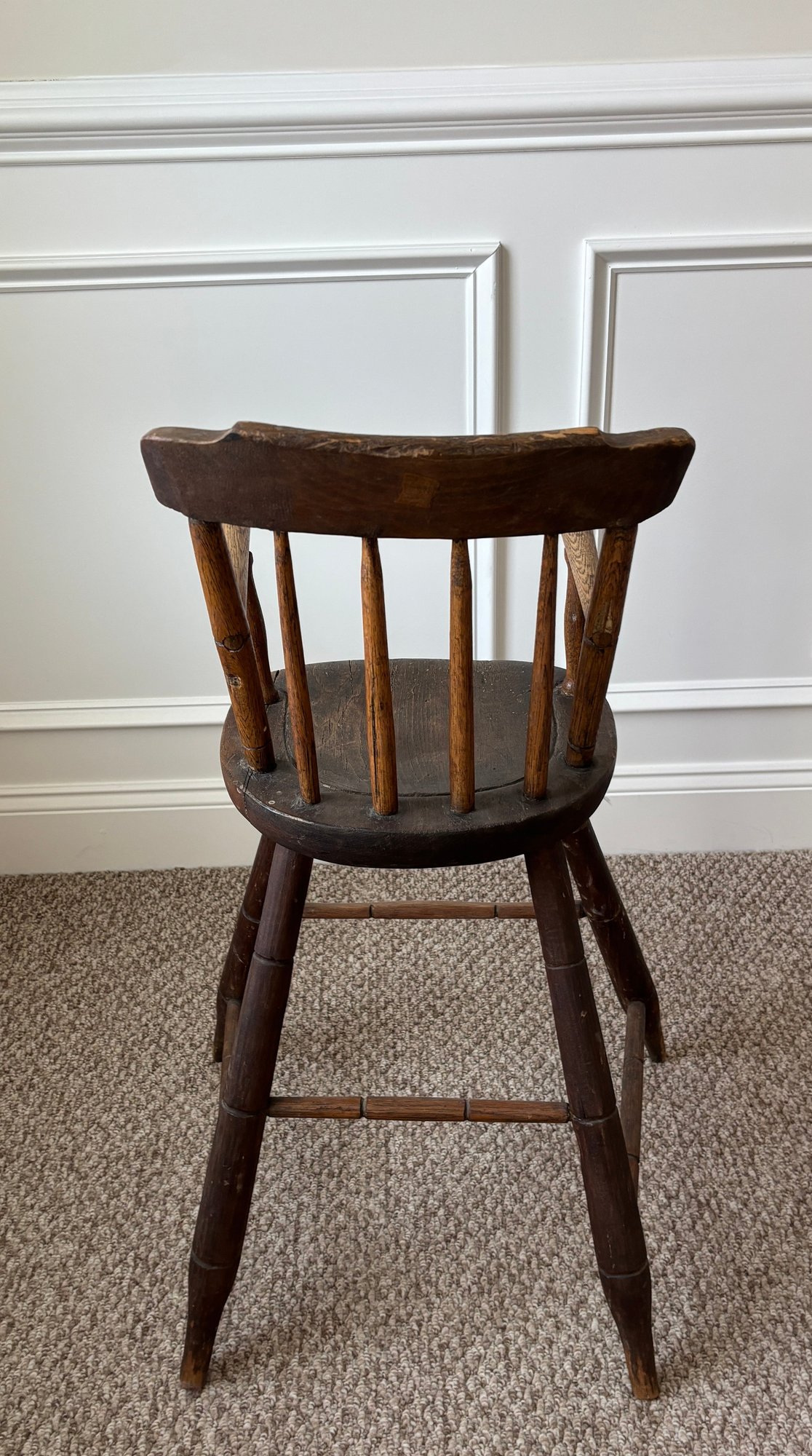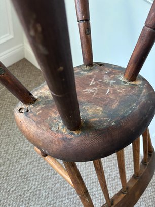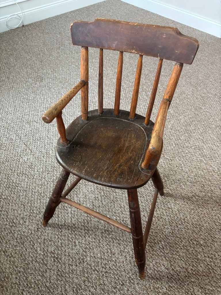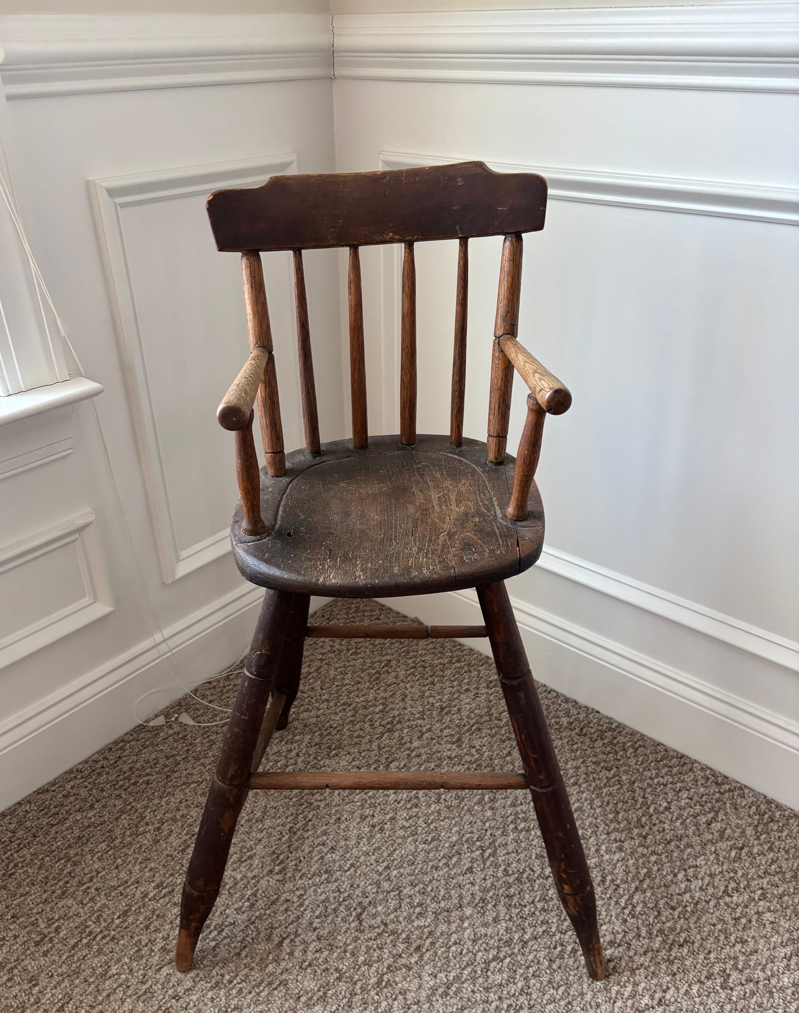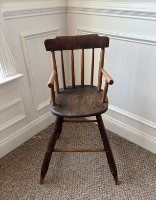 Likely an American Early Windsor-style high chair featuring a comb-back and spindle construction.