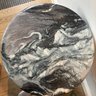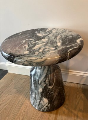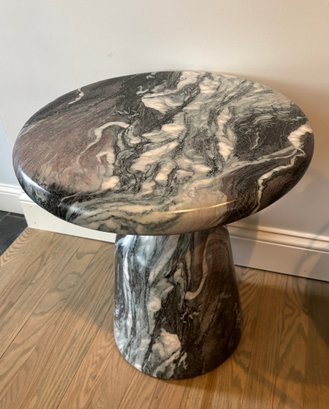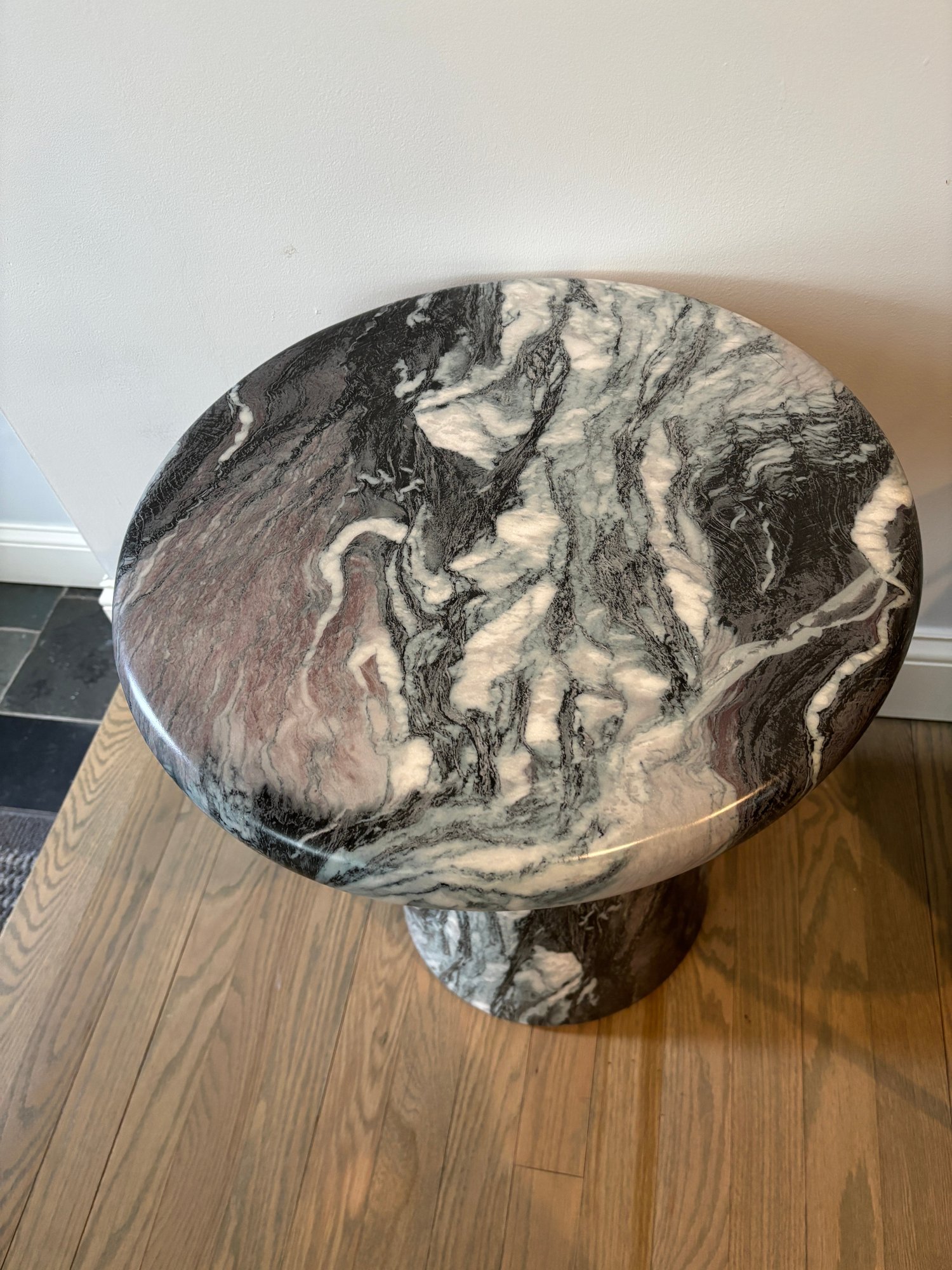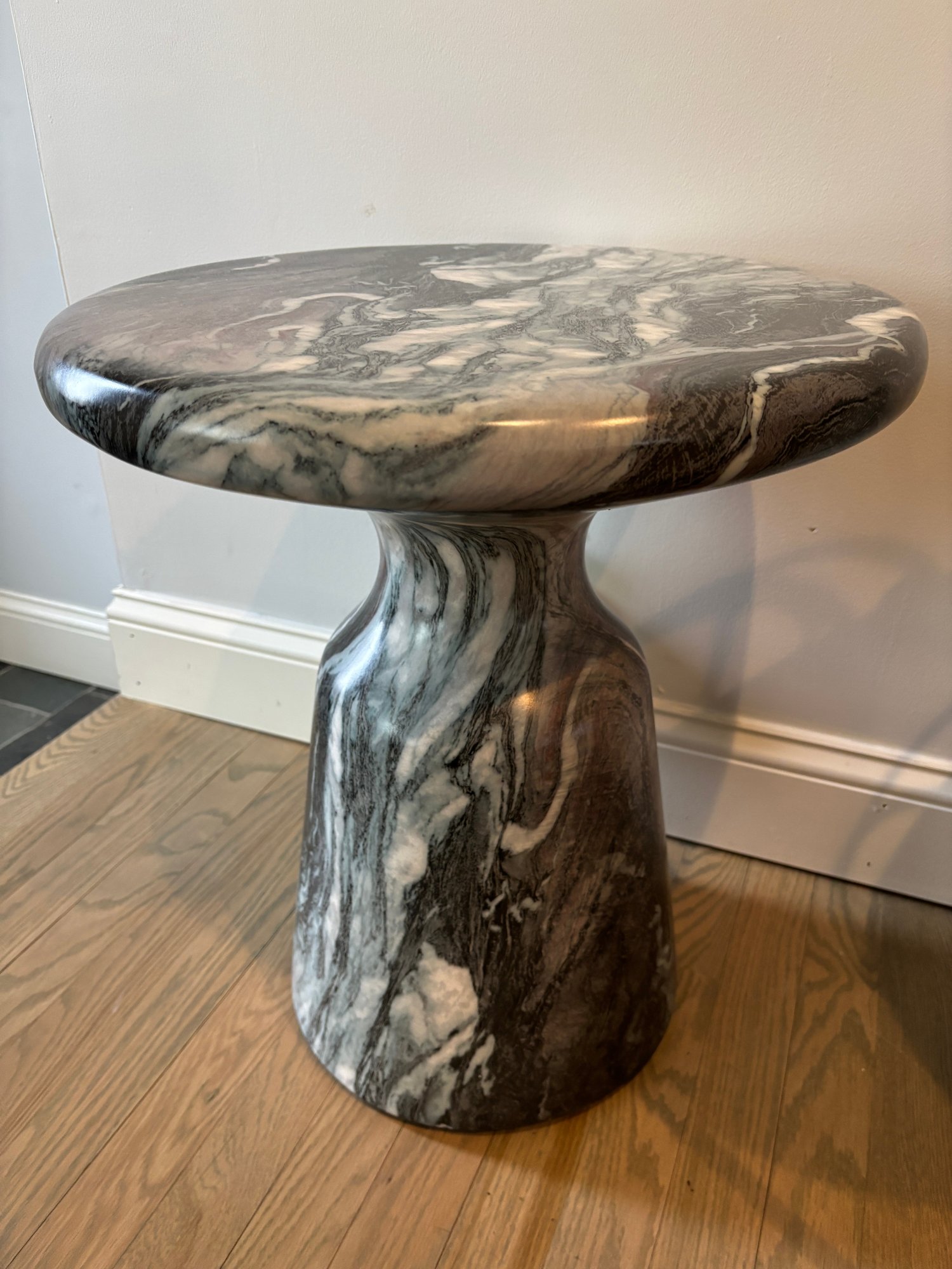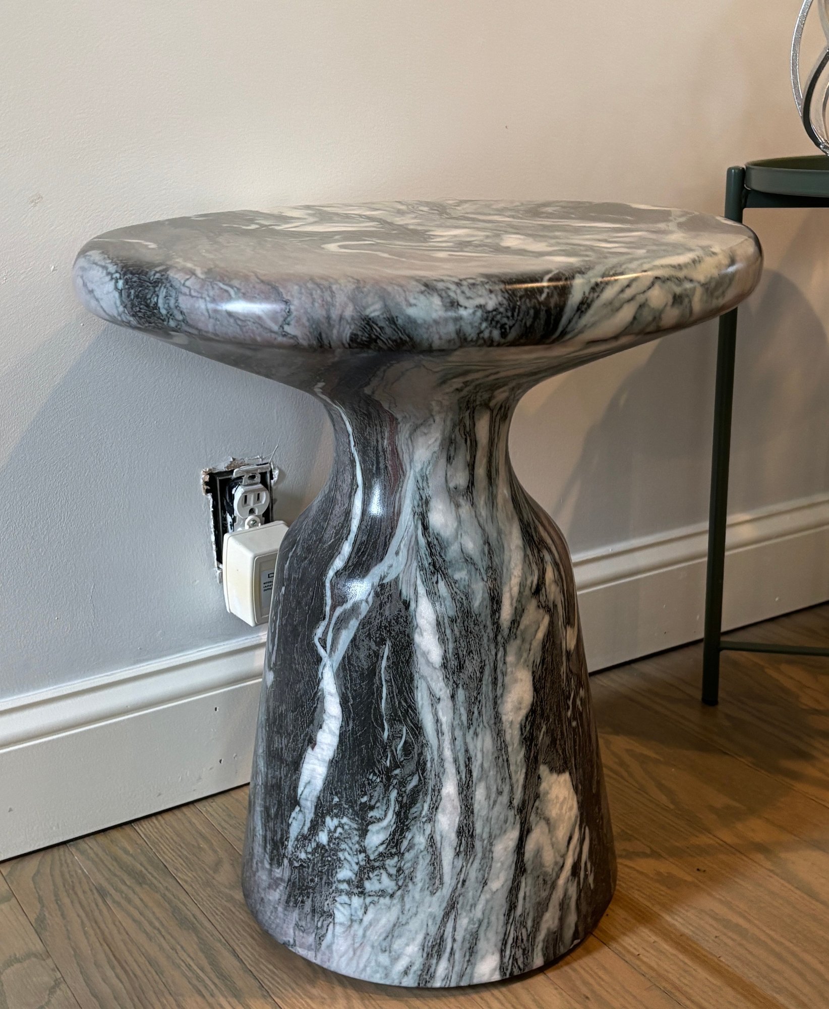 Arteriors Serafina Small Accent Table, which features a lightweight concrete construction with a faux marble finish created through a hydrographic process.