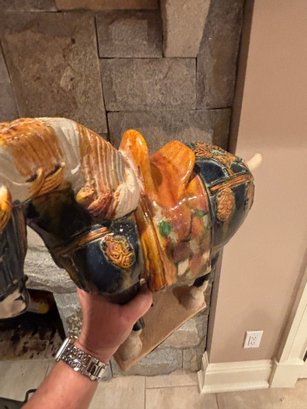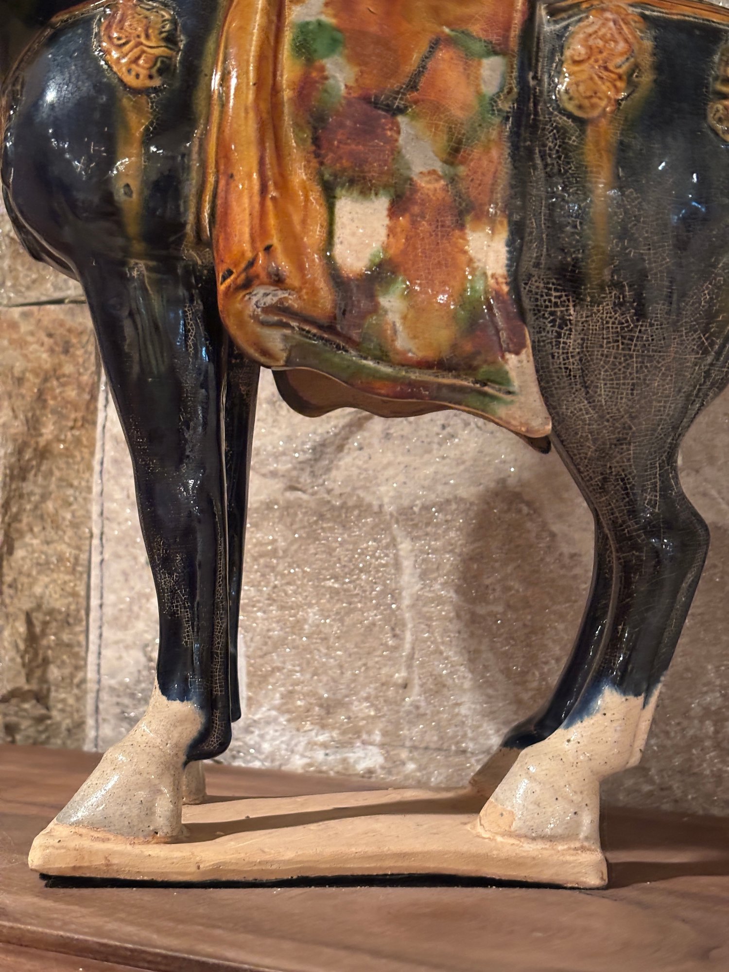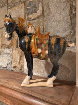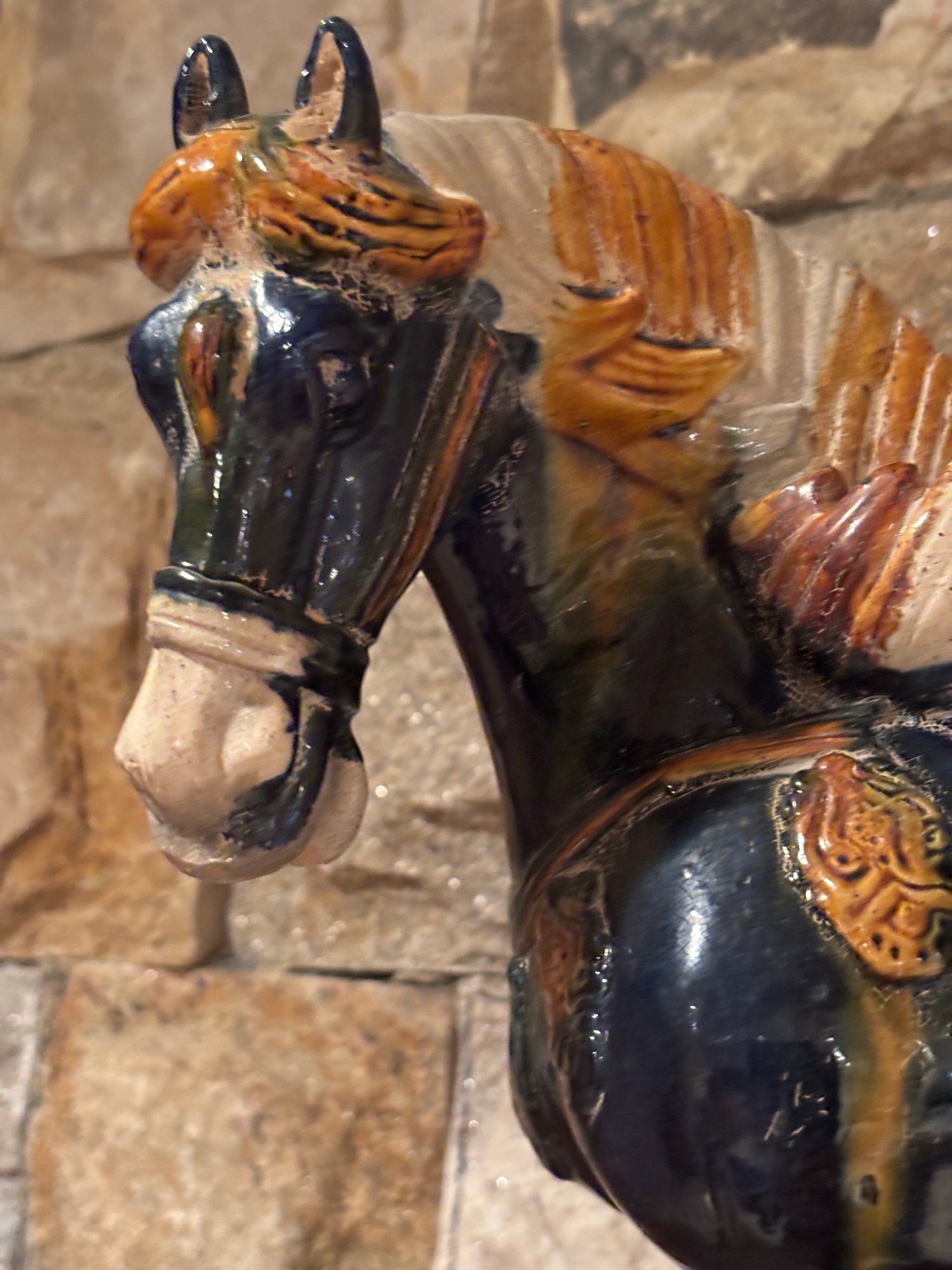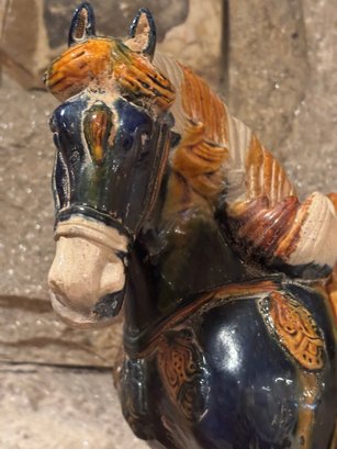 Sancai is a Chinese pottery technique that uses three colors, typically a glazed ceramic vessel. The glazes are tinted with metallic oxides, such as copper for green and ferrous oxide for yellow or brown.