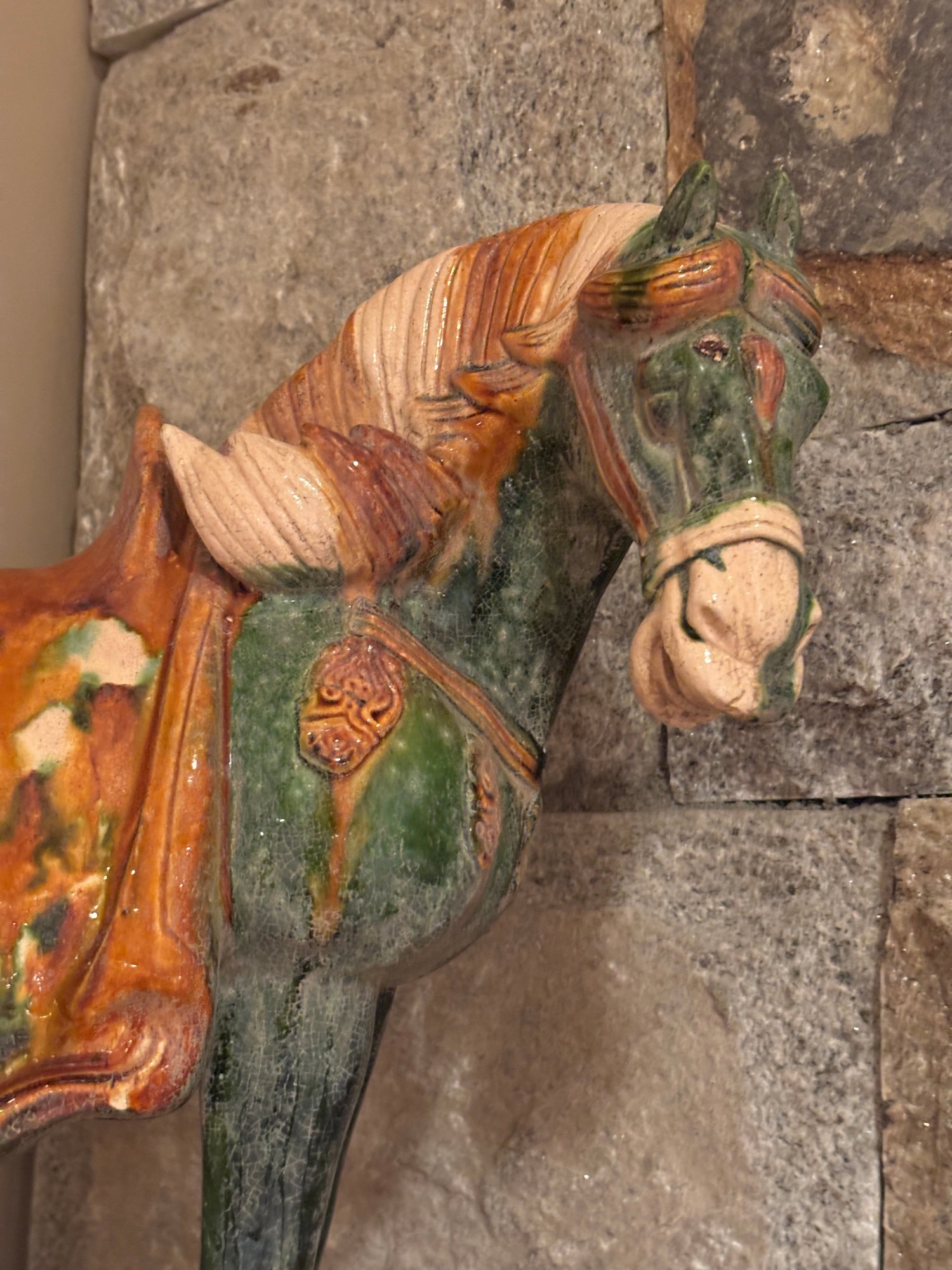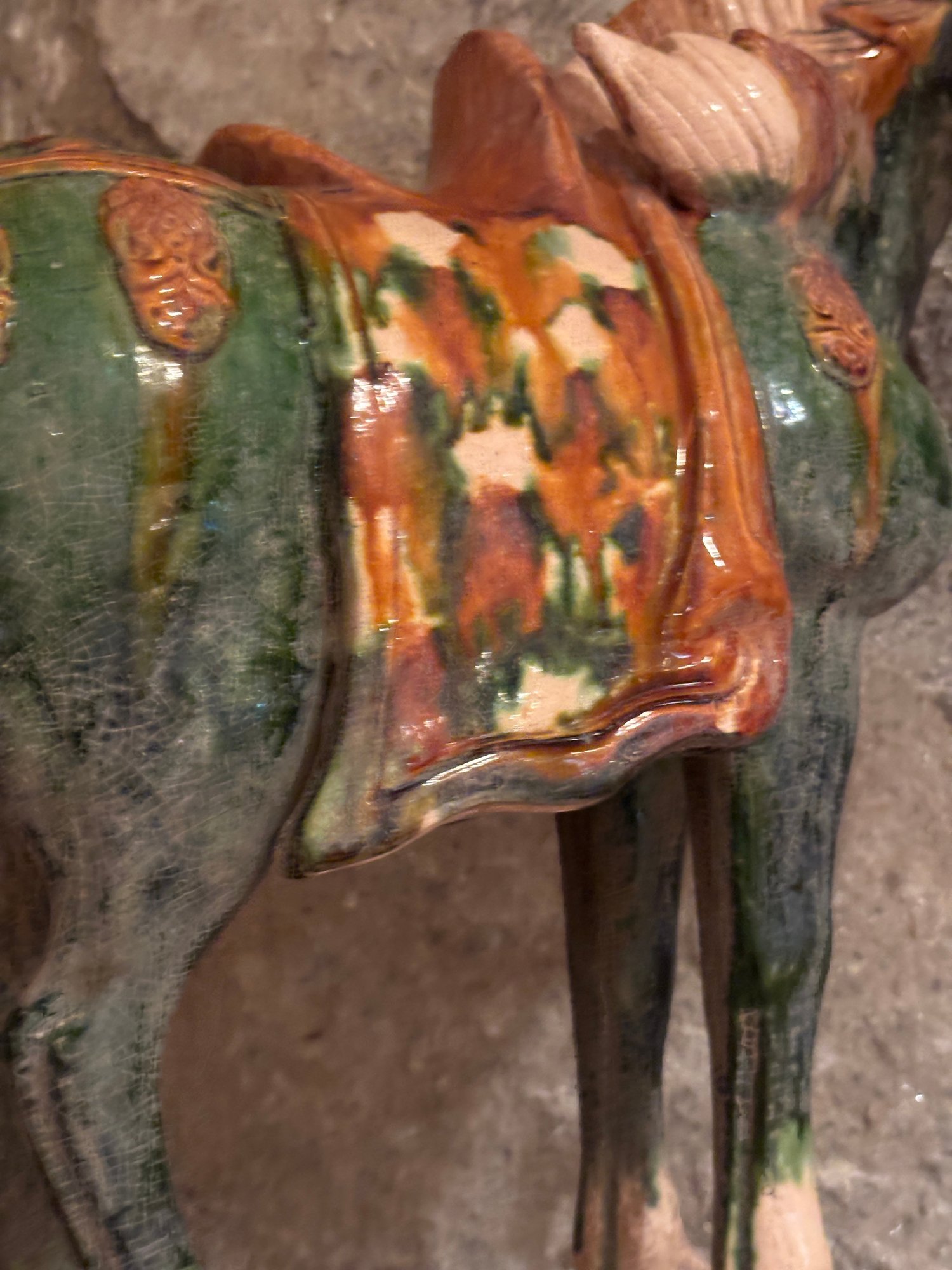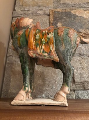 Sancai is a Chinese pottery technique that uses three colors, typically a glazed ceramic vessel. The glazes are tinted with metallic oxides, such as copper for green and ferrous oxide for yellow or brown.
