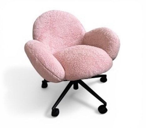 Faux Fur Leisure Desk or Makeup Chair, pink with a plush, fluffy design.