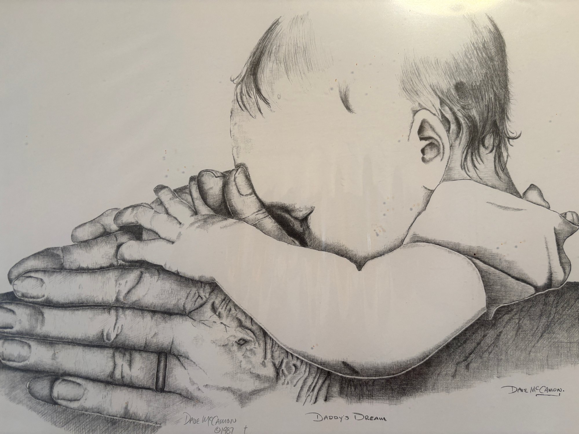 Created by pencil artist Dave McCamon, this illustration highlights the love between father and baby.