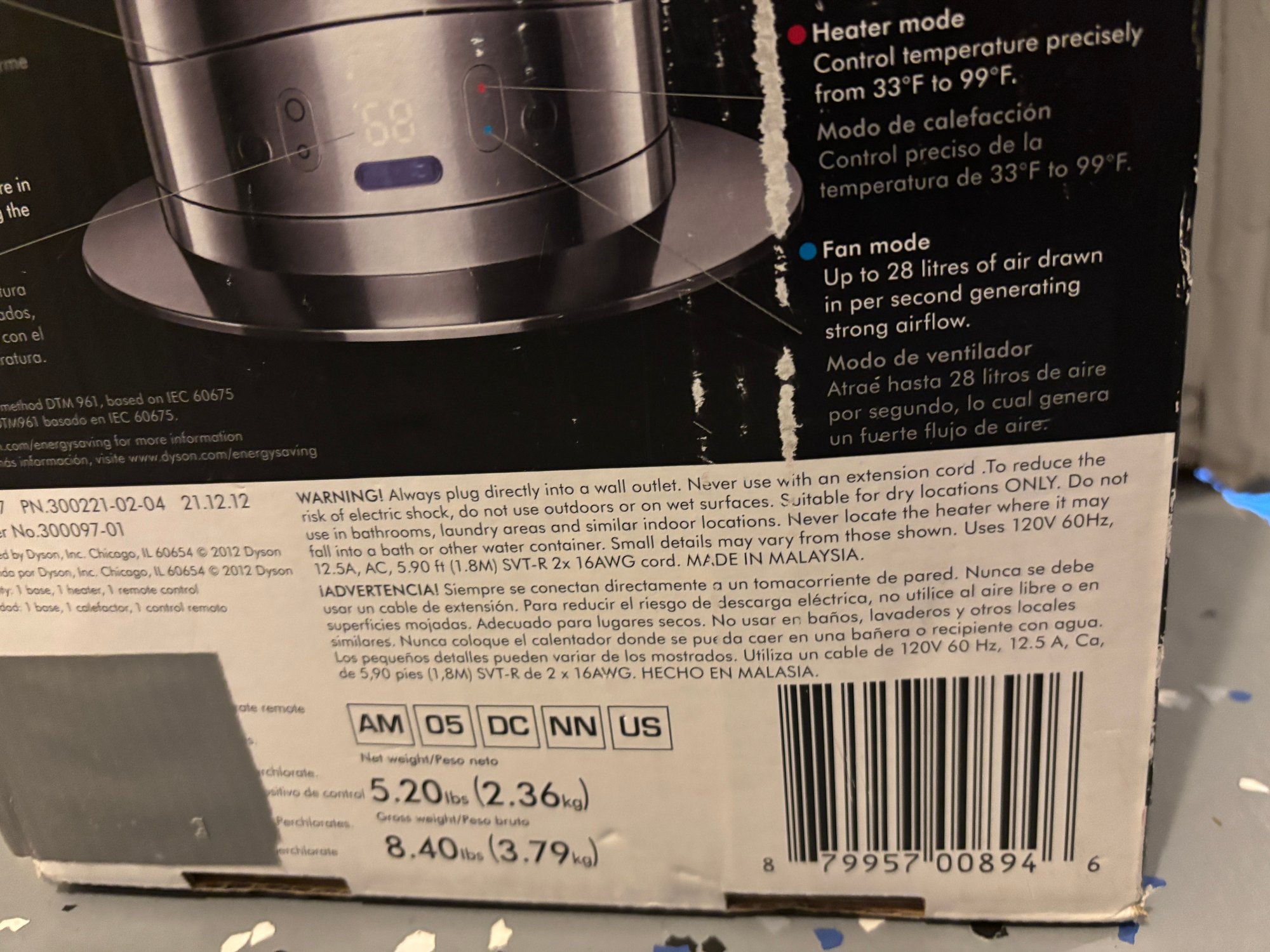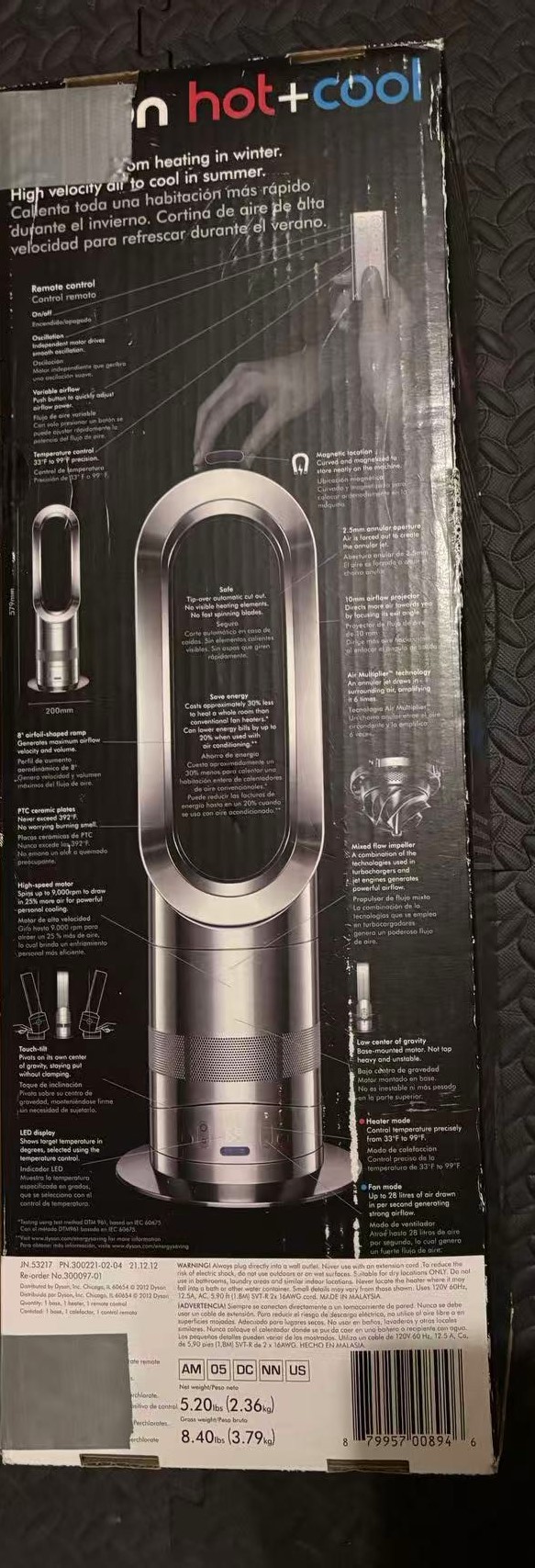 Technology: Uses Air Multiplier technology to draw in and project air.