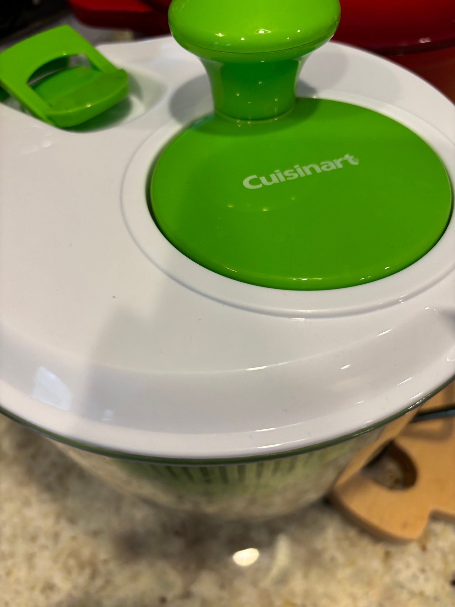 Red/orange enamel Roaster, pig shaped cutting board, Cuisinart Salad spinner