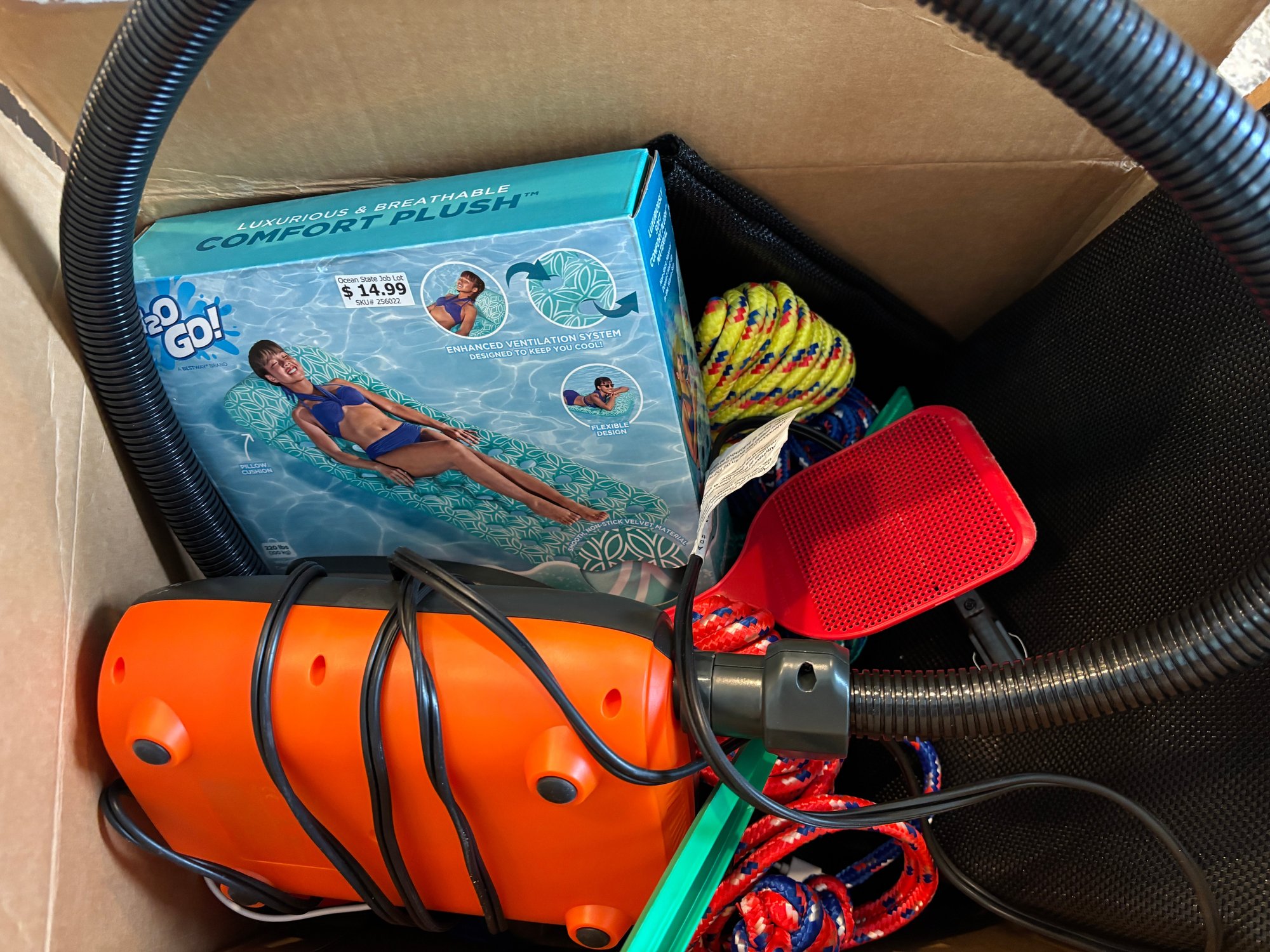 Pool float, bungee cords, outdoor speaker, lanterns and more!