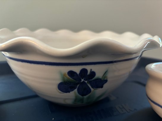 Large bowl 9 1/2 inches diameter and 4 inches high. Small bowls are 5 inches diameter and 2 1/2 inches high.