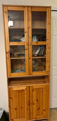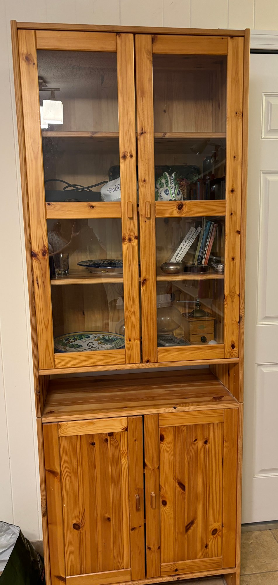glass front door on upper shelving