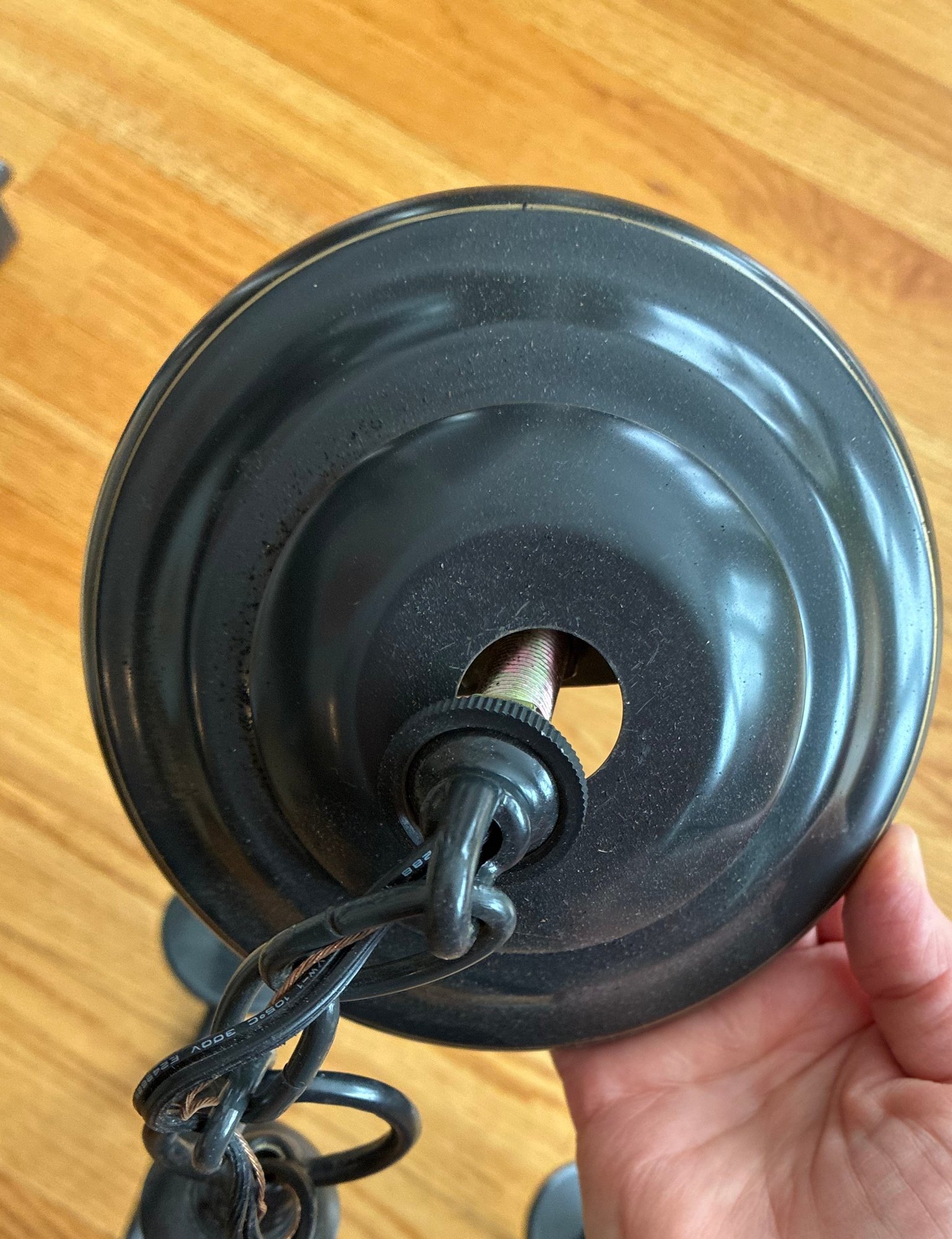 25 “ wide, 26” tall + 5” more inches on the chain before you get to the ceiling plate