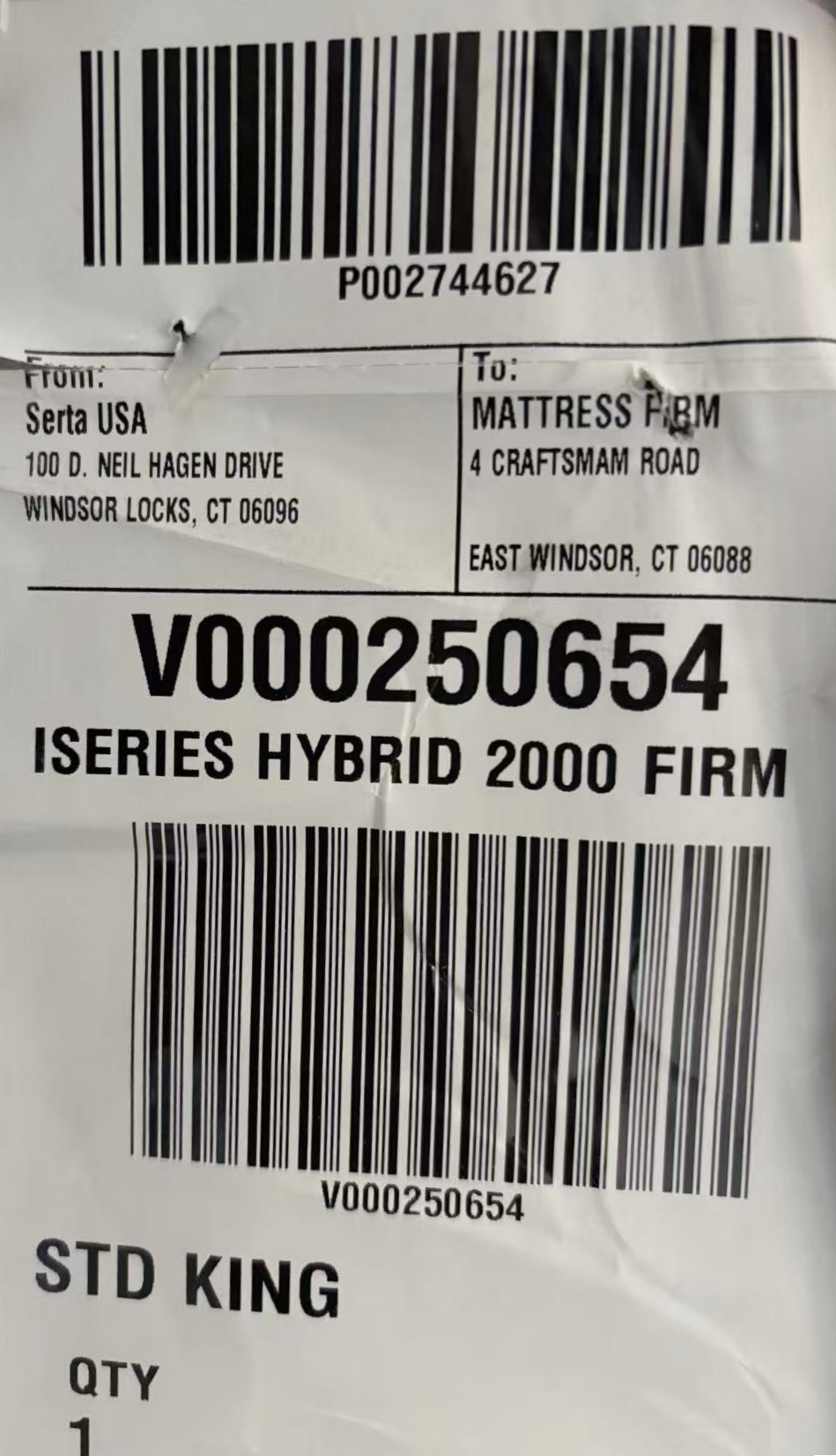 Serta iSeries Hybrid 2000 Firm STD King with double-end electric adjustable base (head and foot move) and remote control.