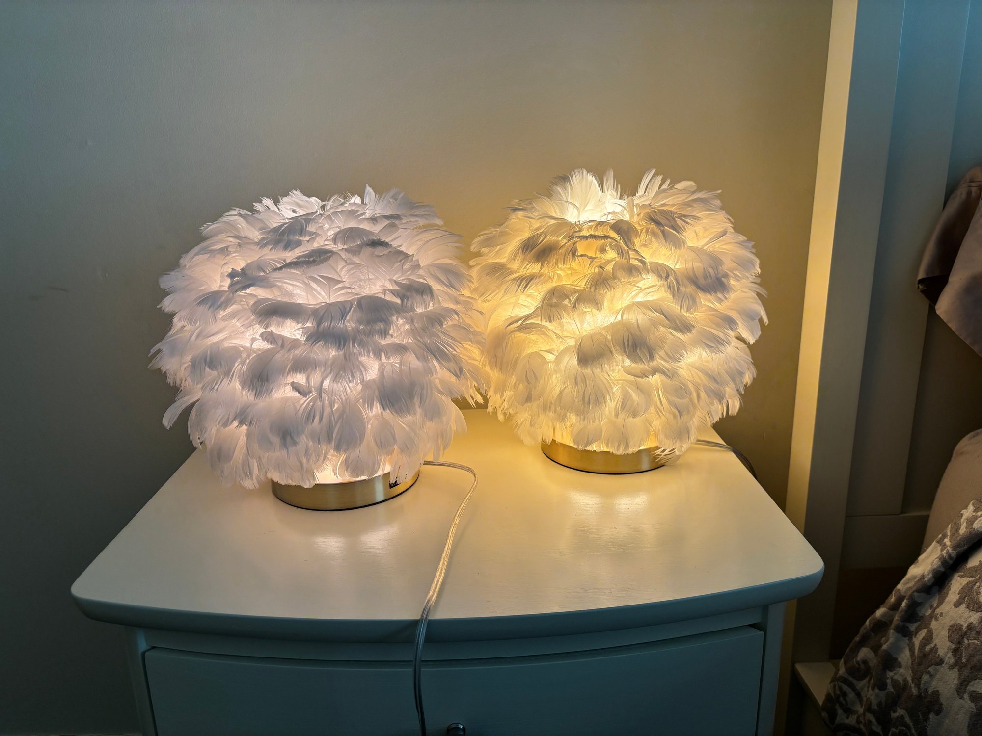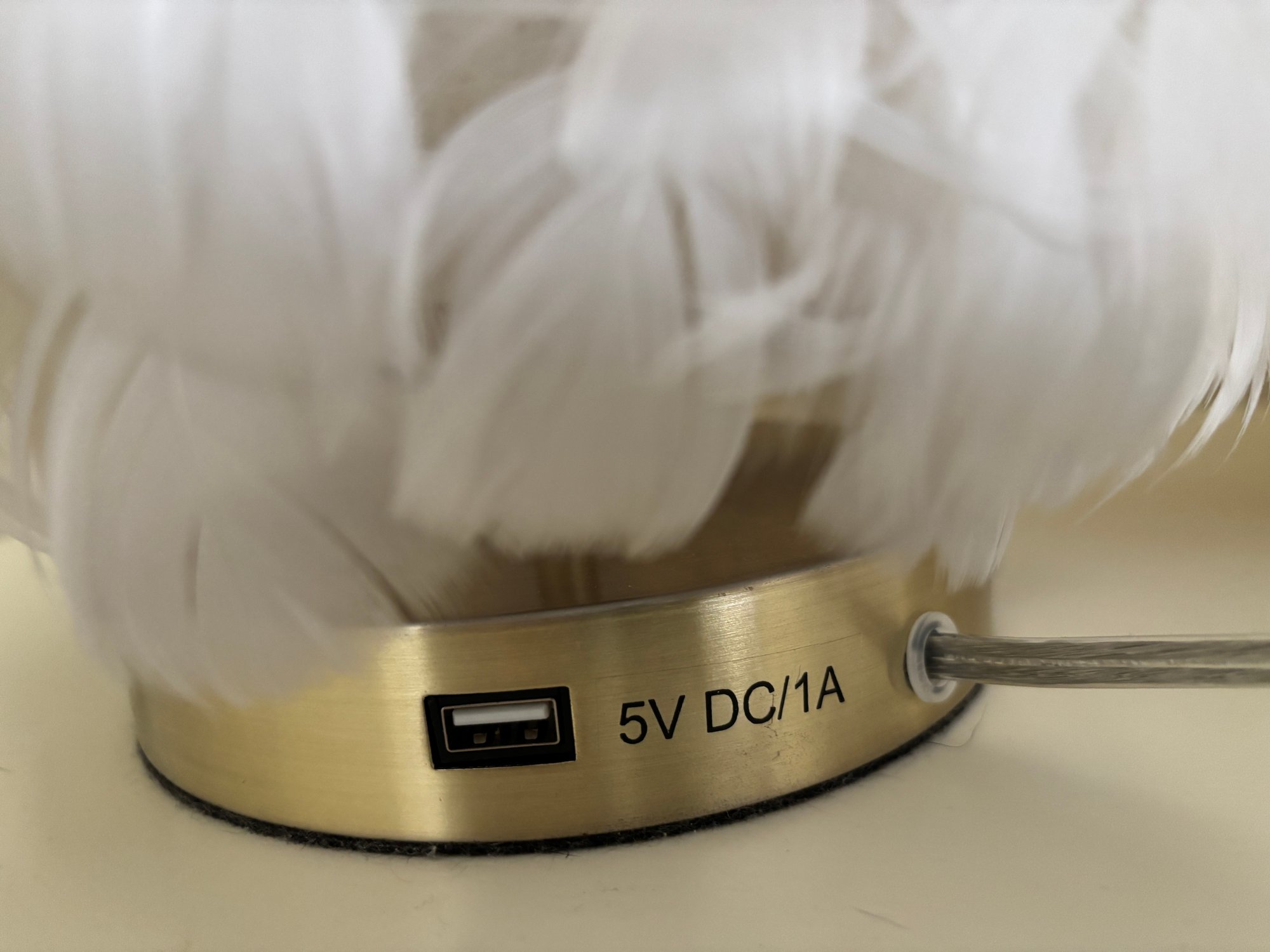 Give your room a bohemian and glam vibe with these feather table lamps. USB port.