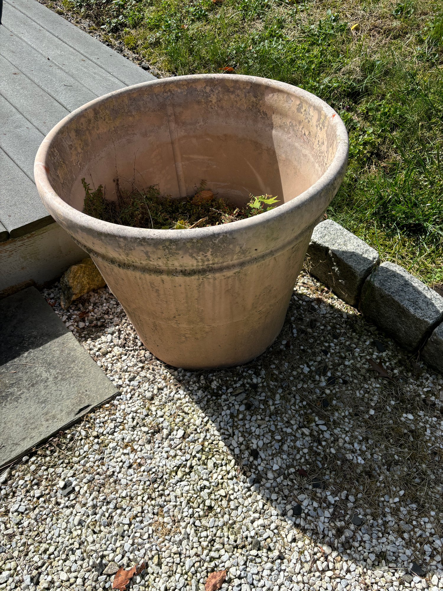 Notes: The three large outside pots have fading and scuffing, but can be painted