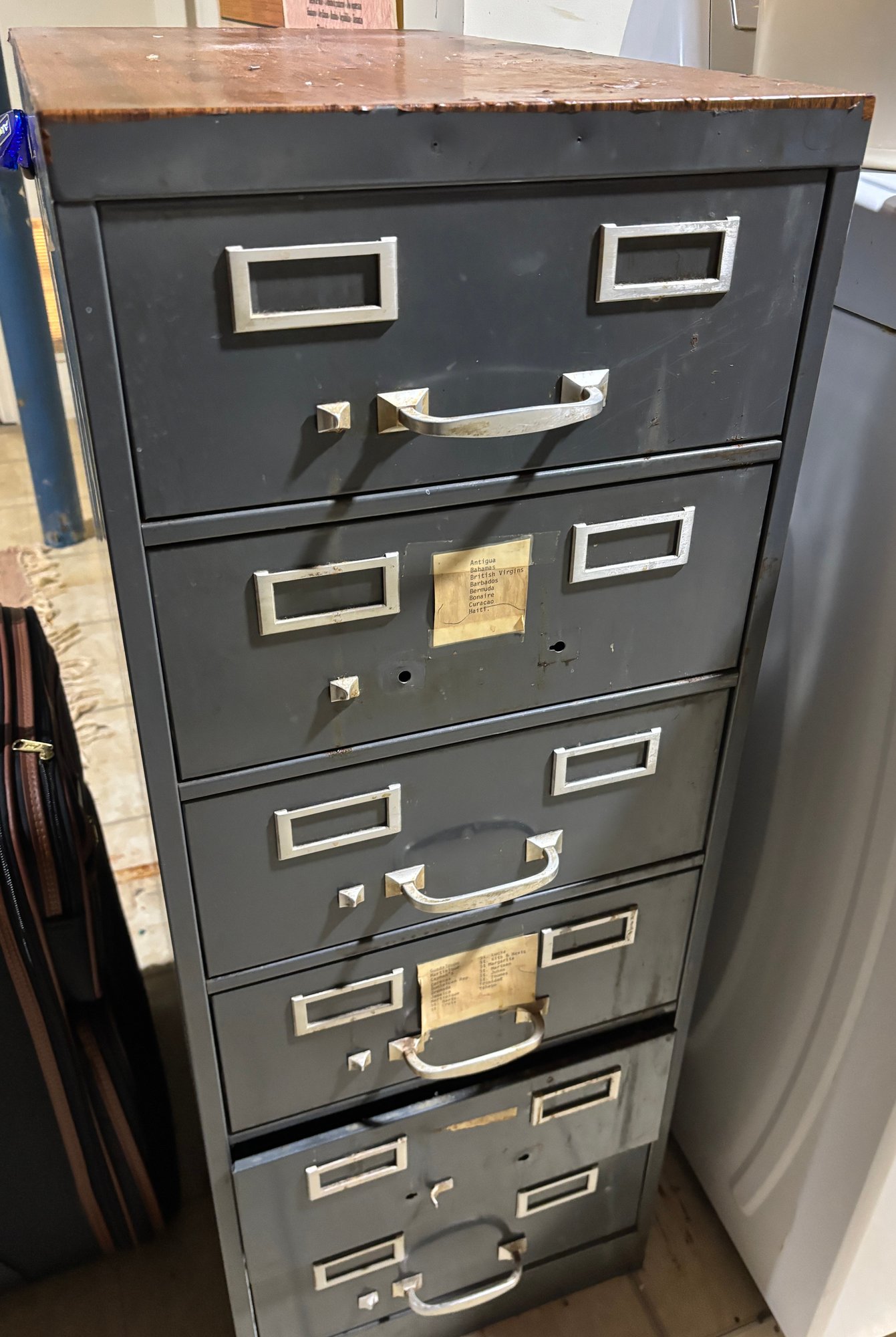 Black metal filing cabinet, six drawers