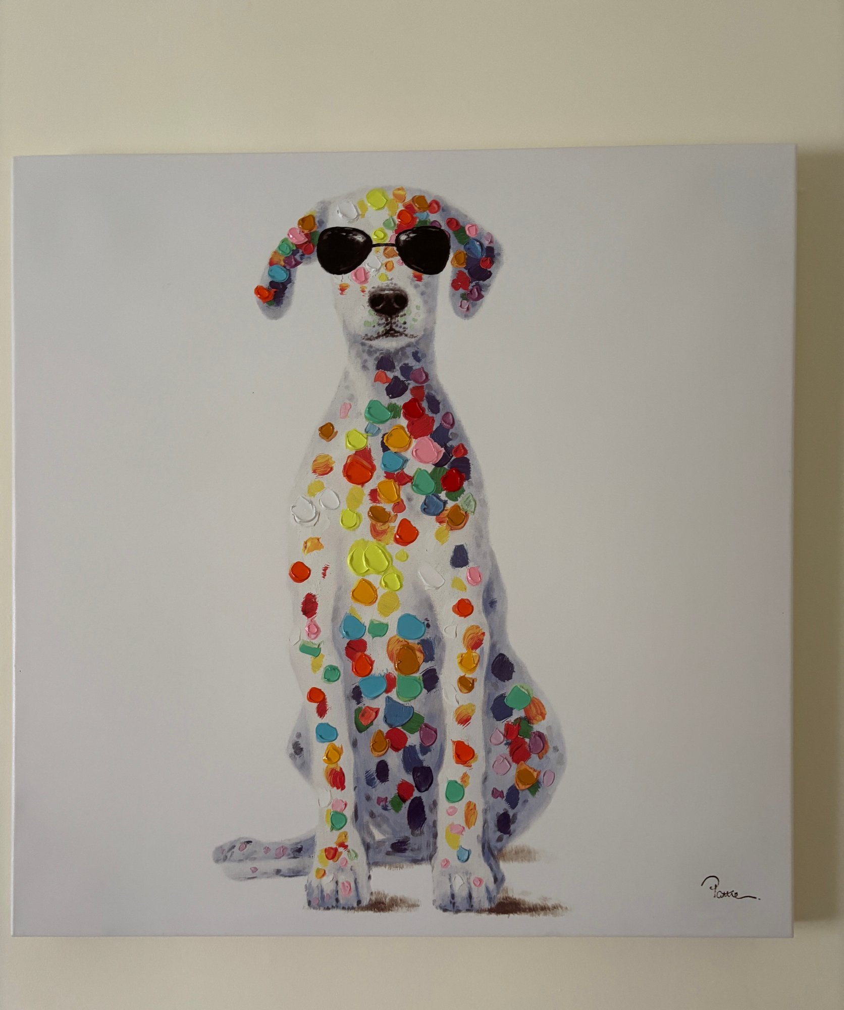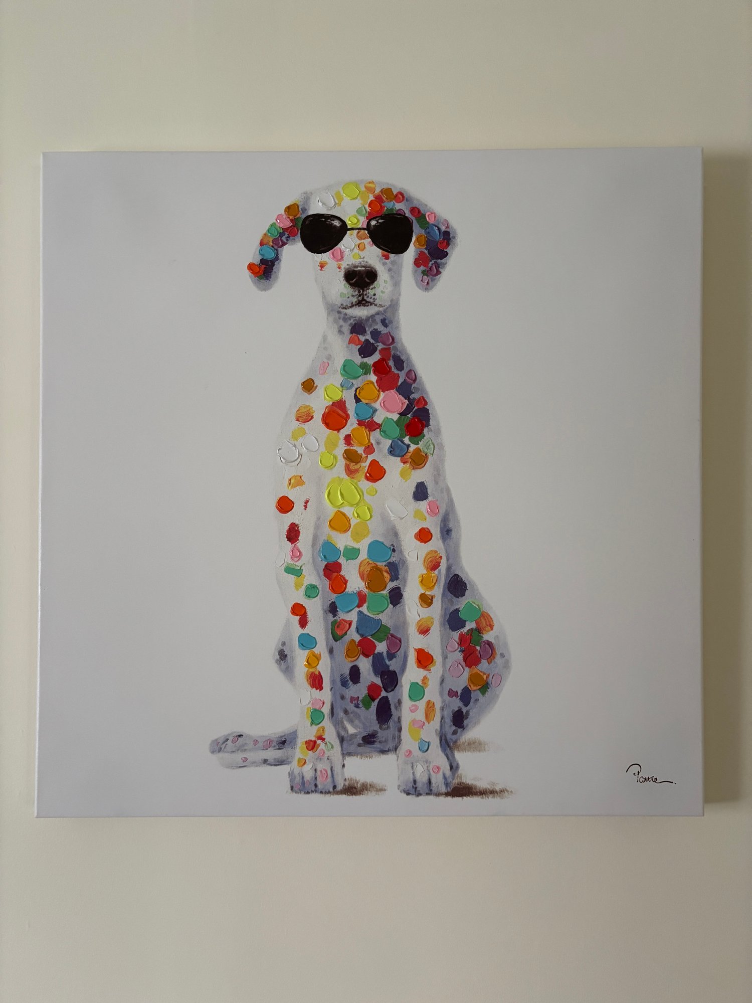 This whimsical artwork is titled "Sun Loving Doggy"