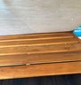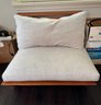 Elevate your poolside or patio experience with this gorgeous teak lounge chair, possibly by CB2. Comfortable and relaxing. Includes removable cushions.