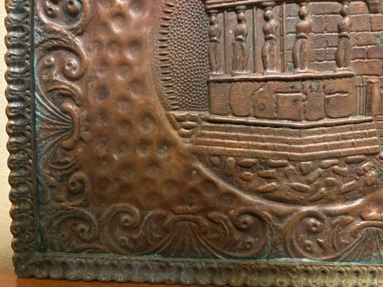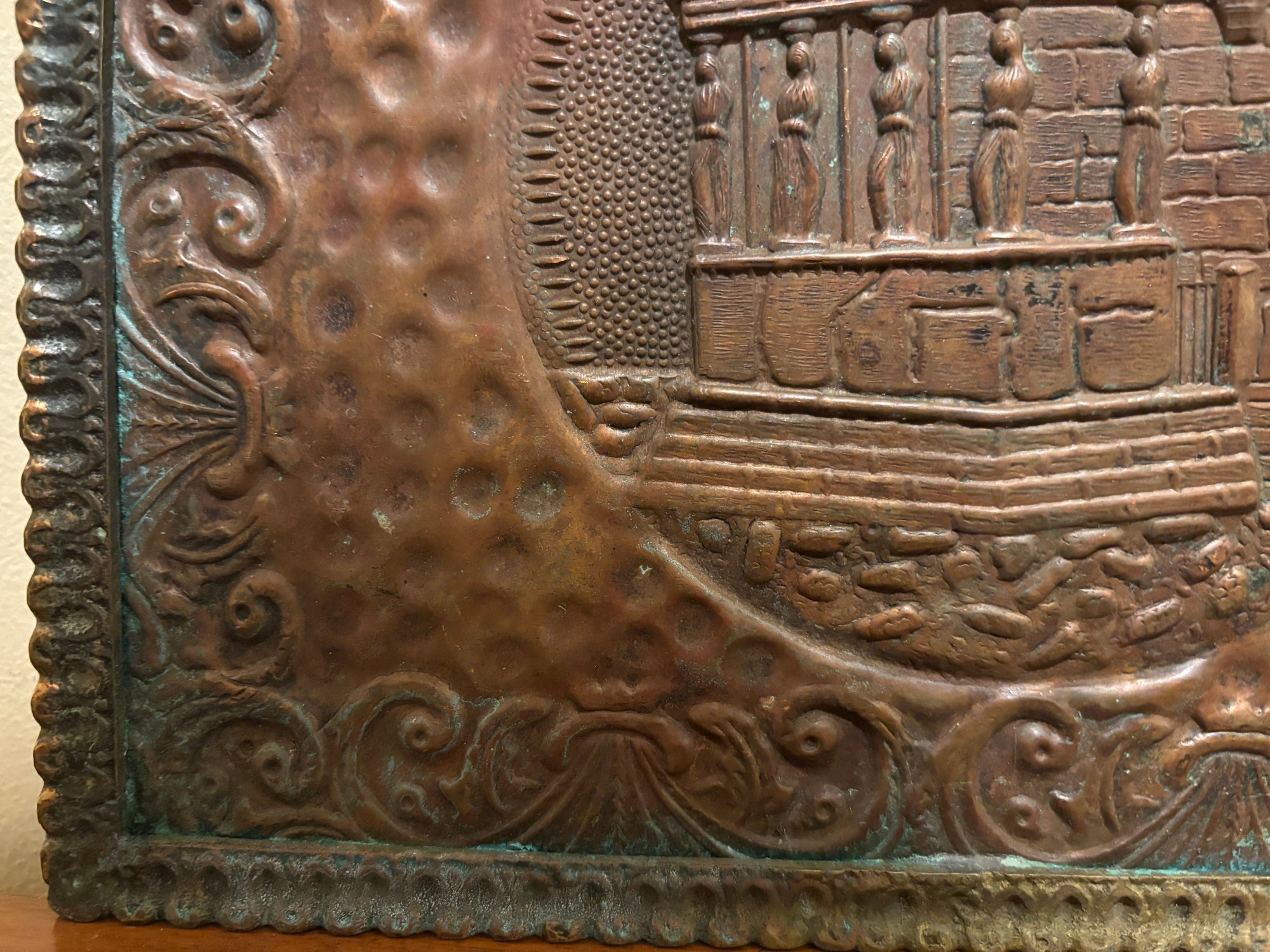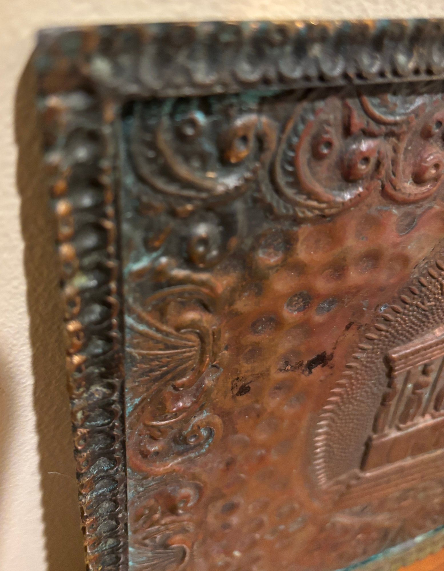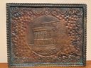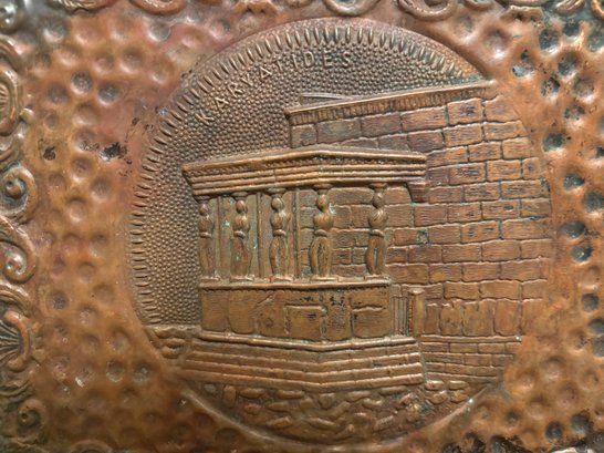 Beautiful patina on this vintage copper/bronze plaque depicting the Parthenon in Athens, Greece.