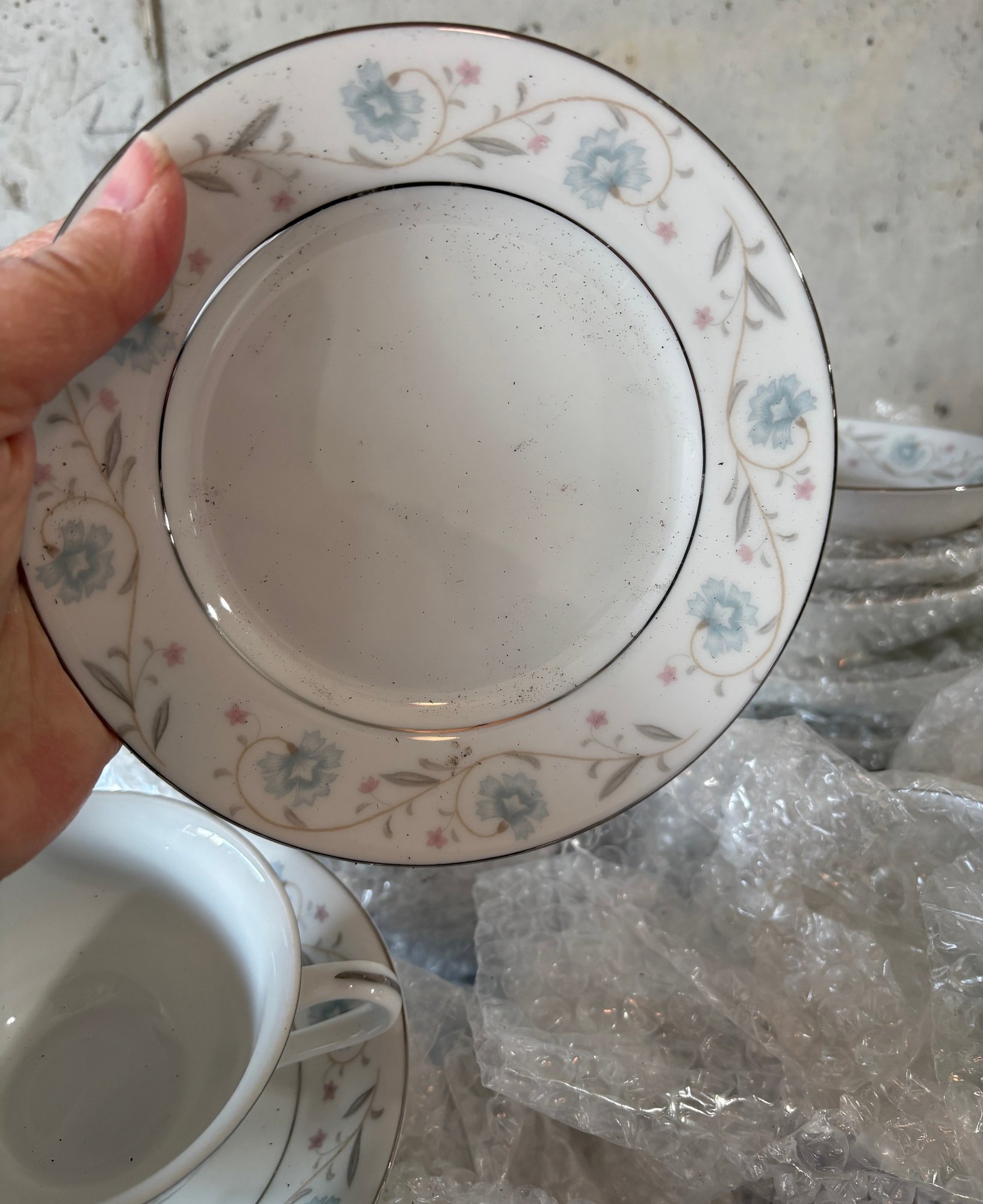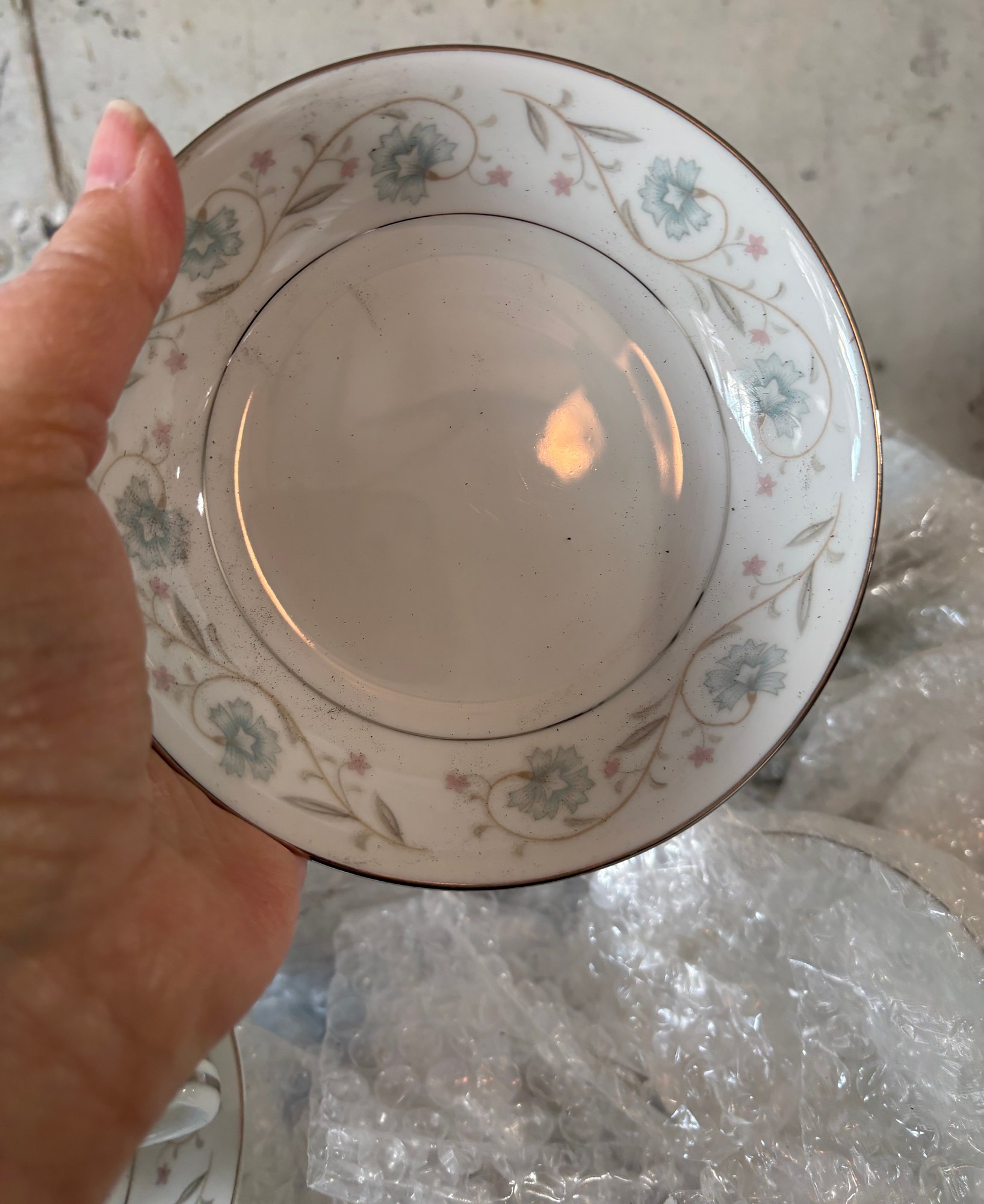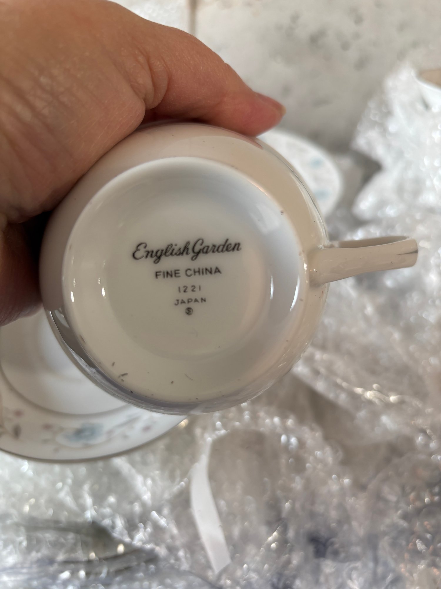 Vintage set in the "English Garden" pattern (number 1221) produced by Fine China of Japan.