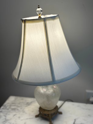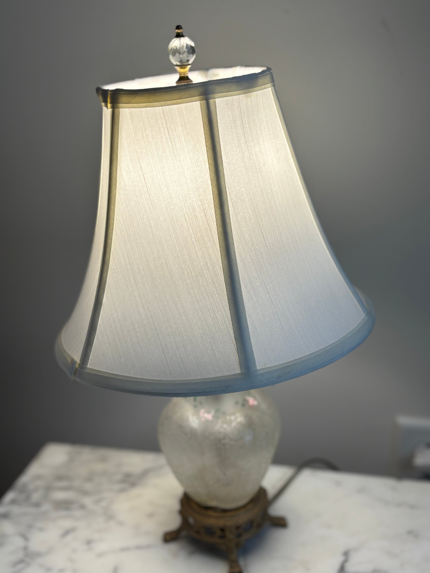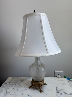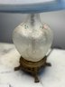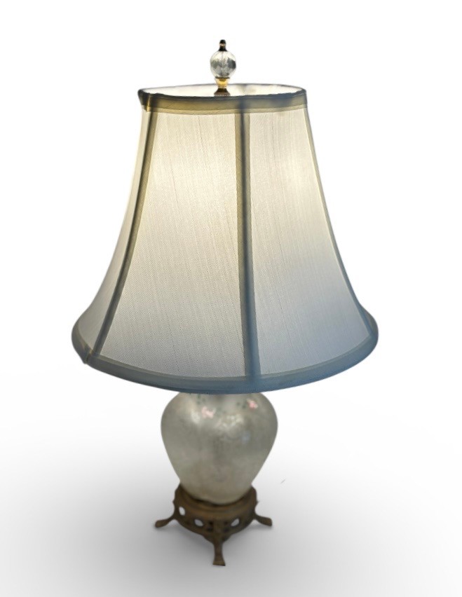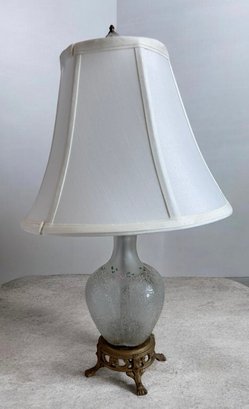 Frosted finish with a clear, etched pattern on the body.