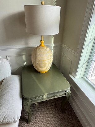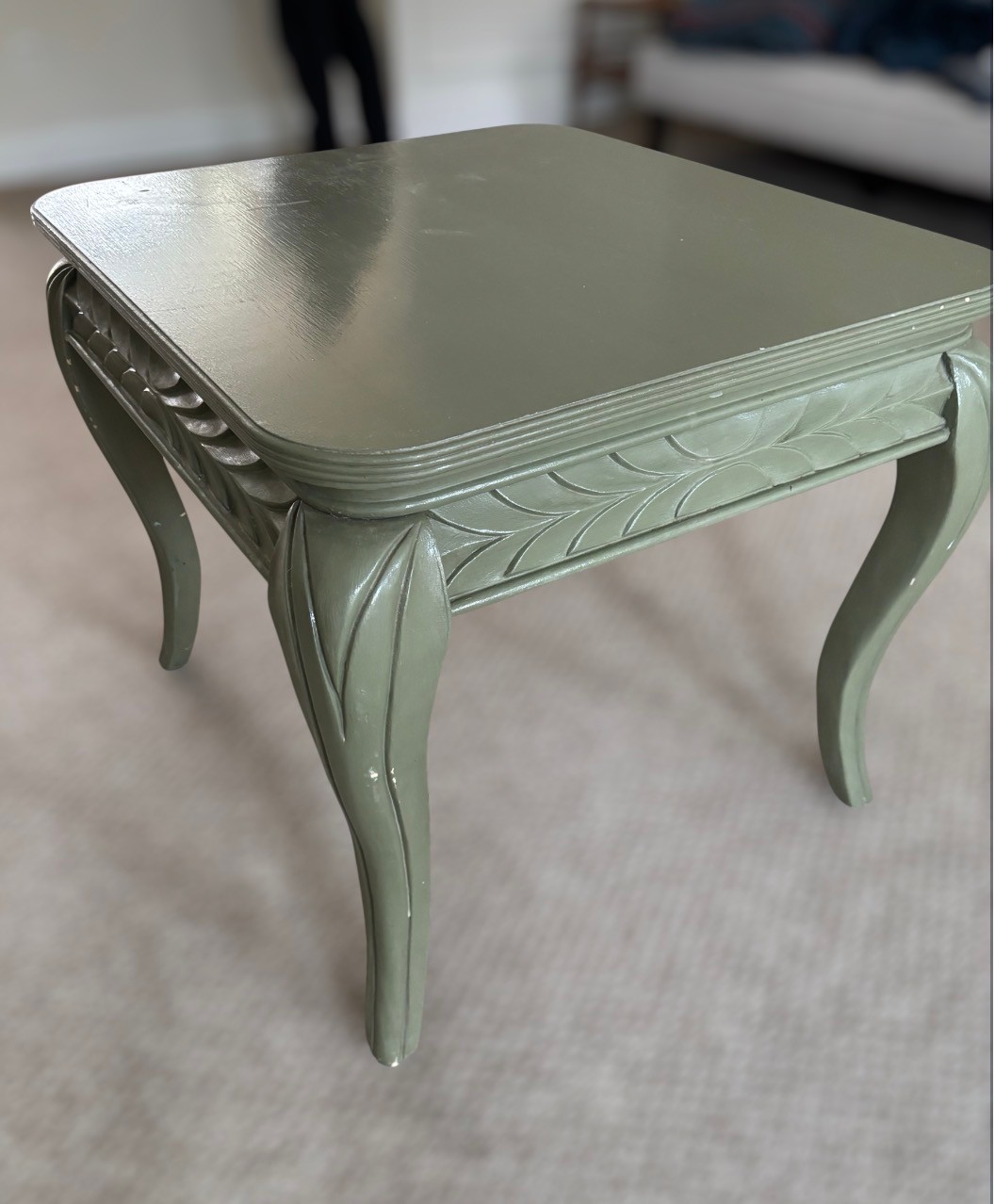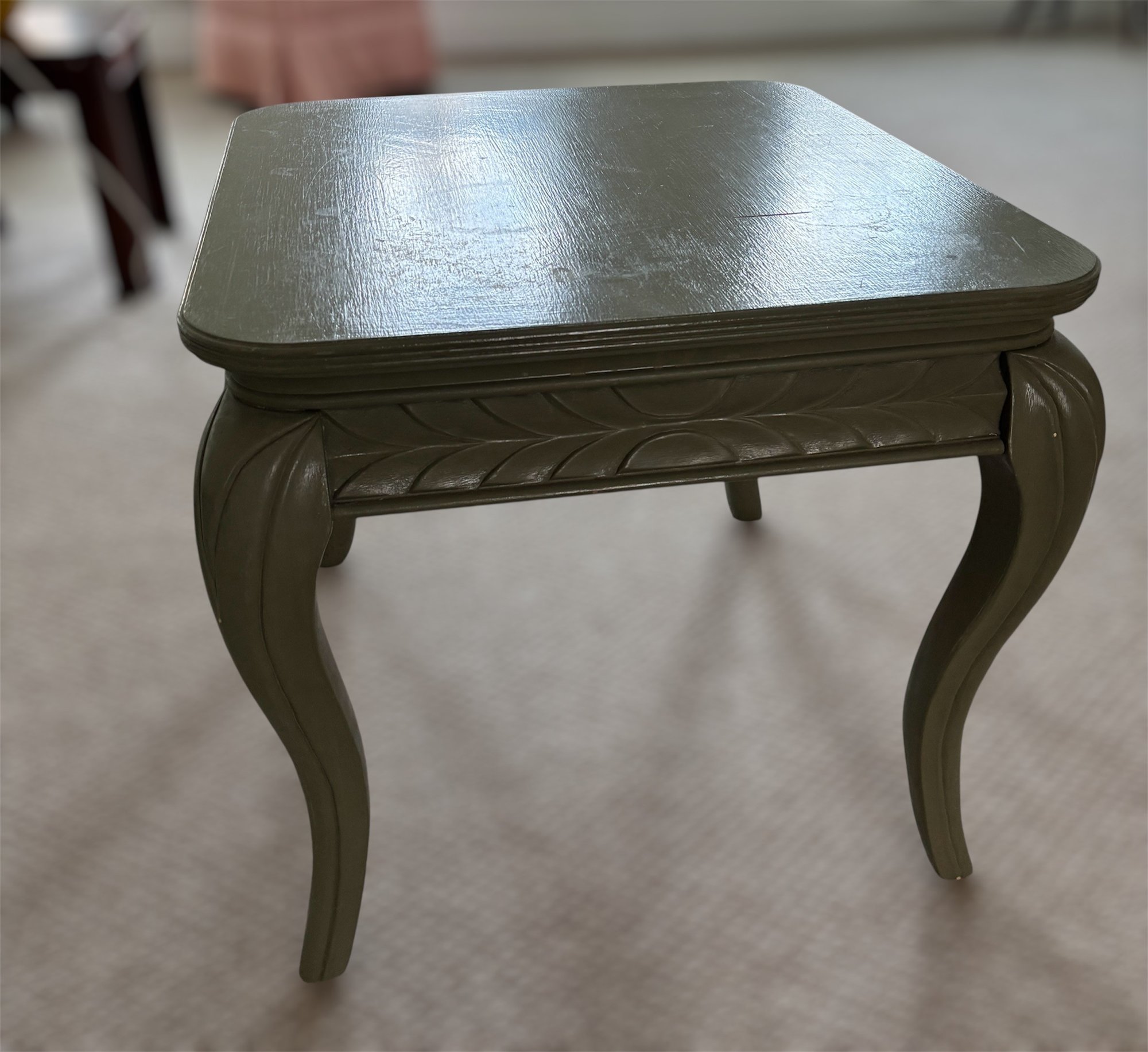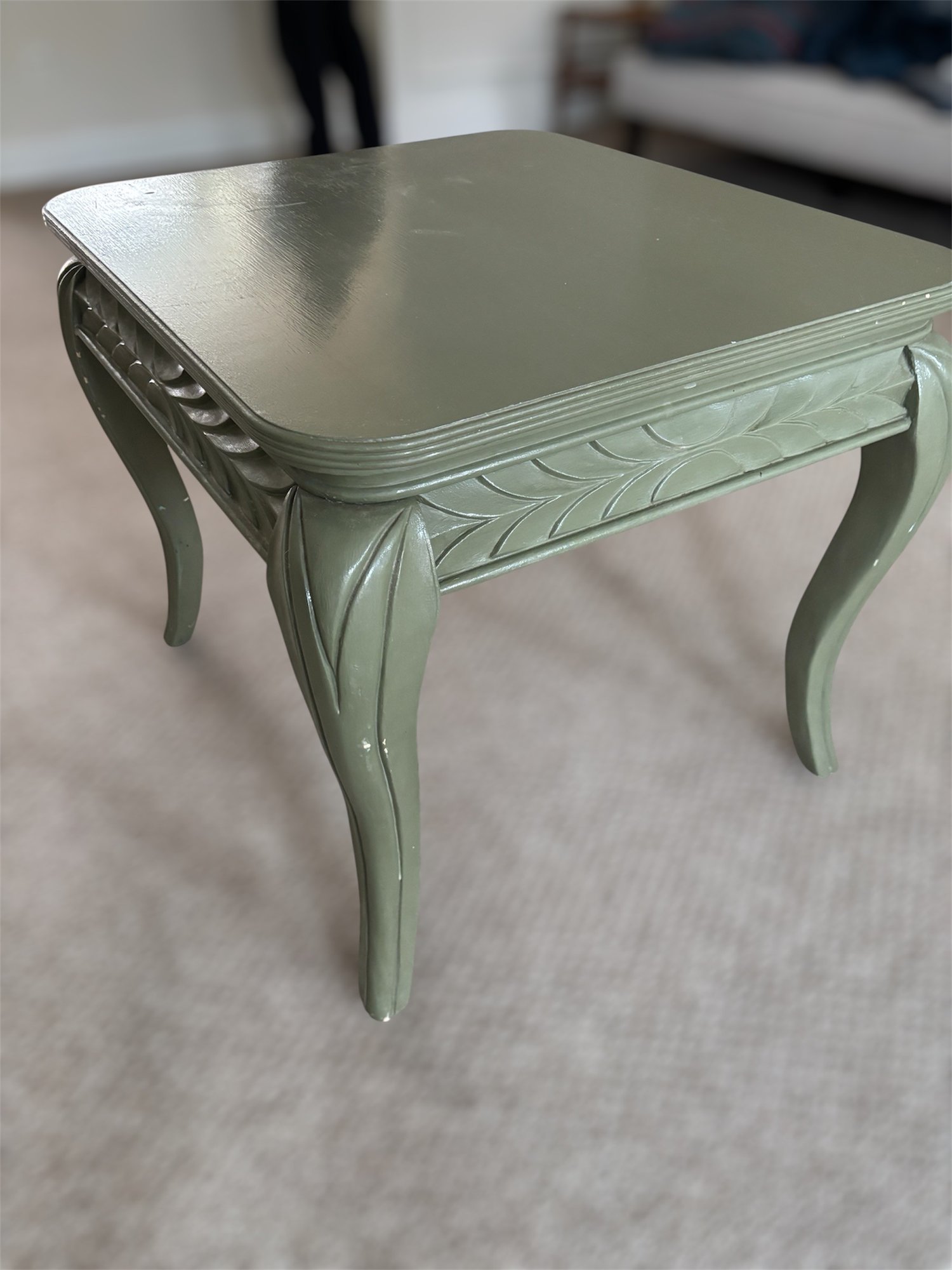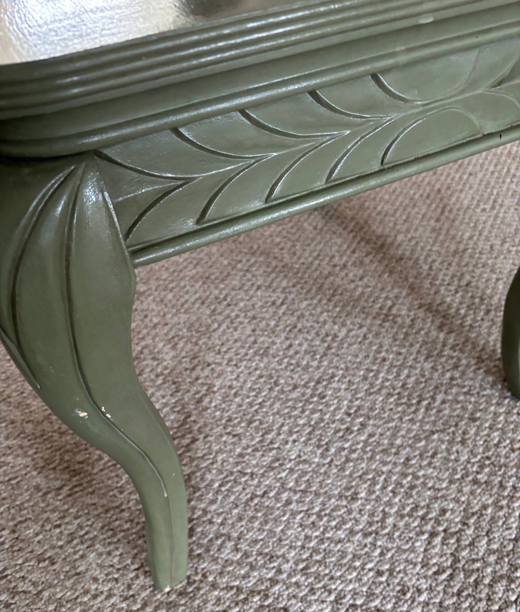 Vintage, hand-painted wooden side table with carved cabriole legs