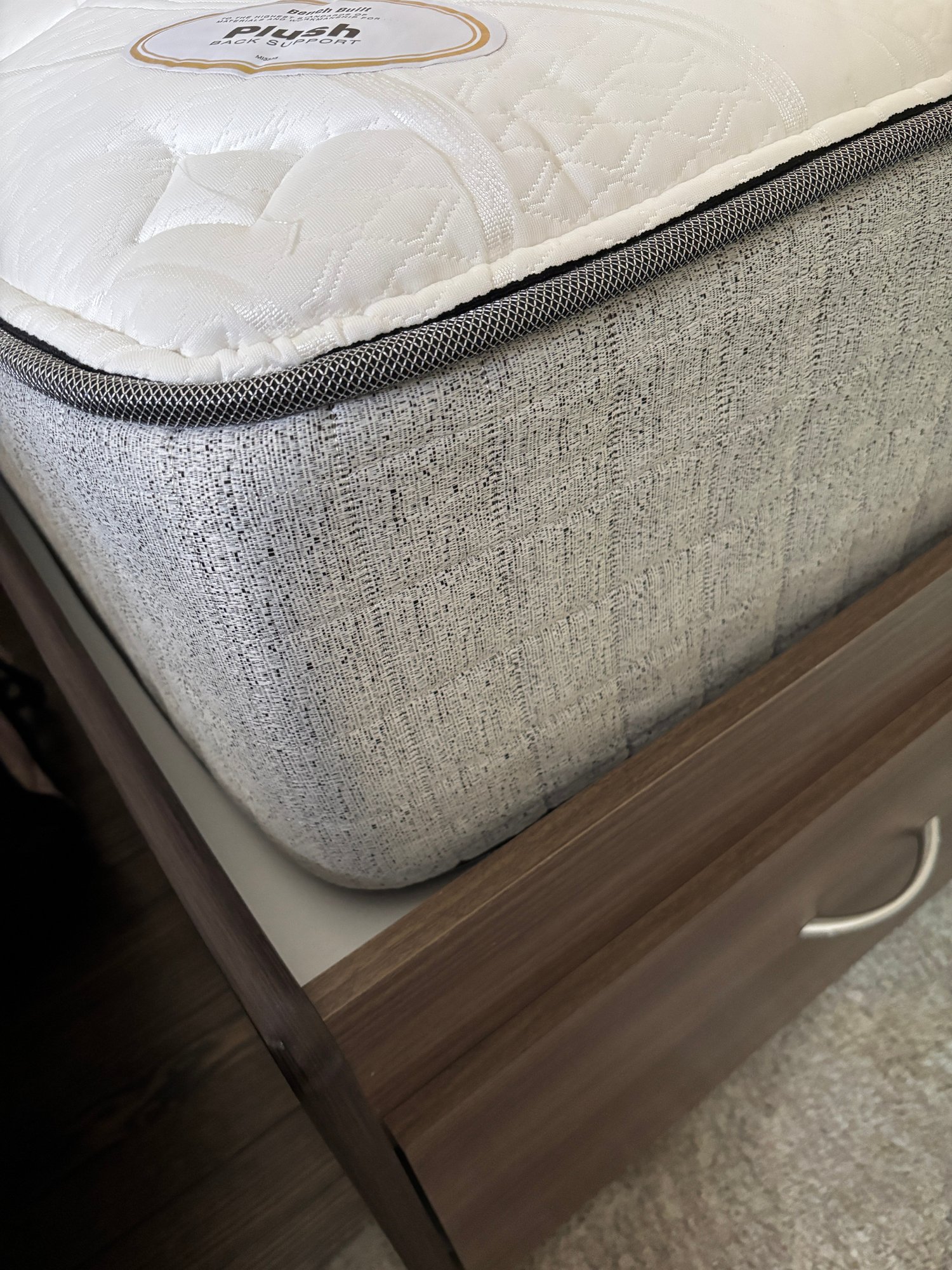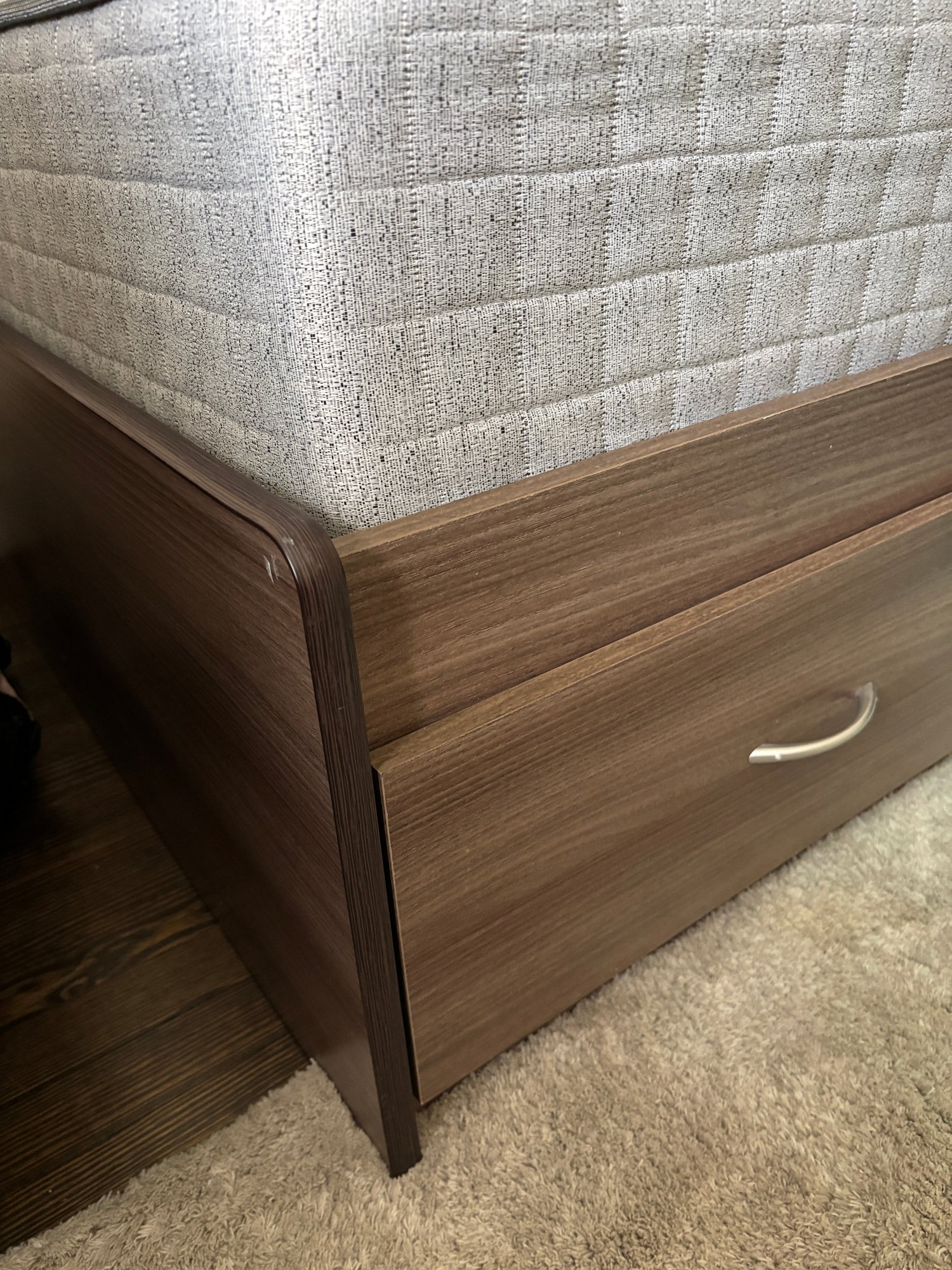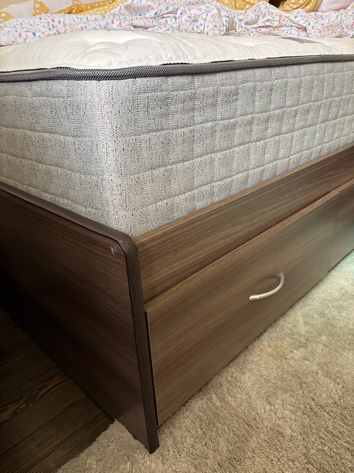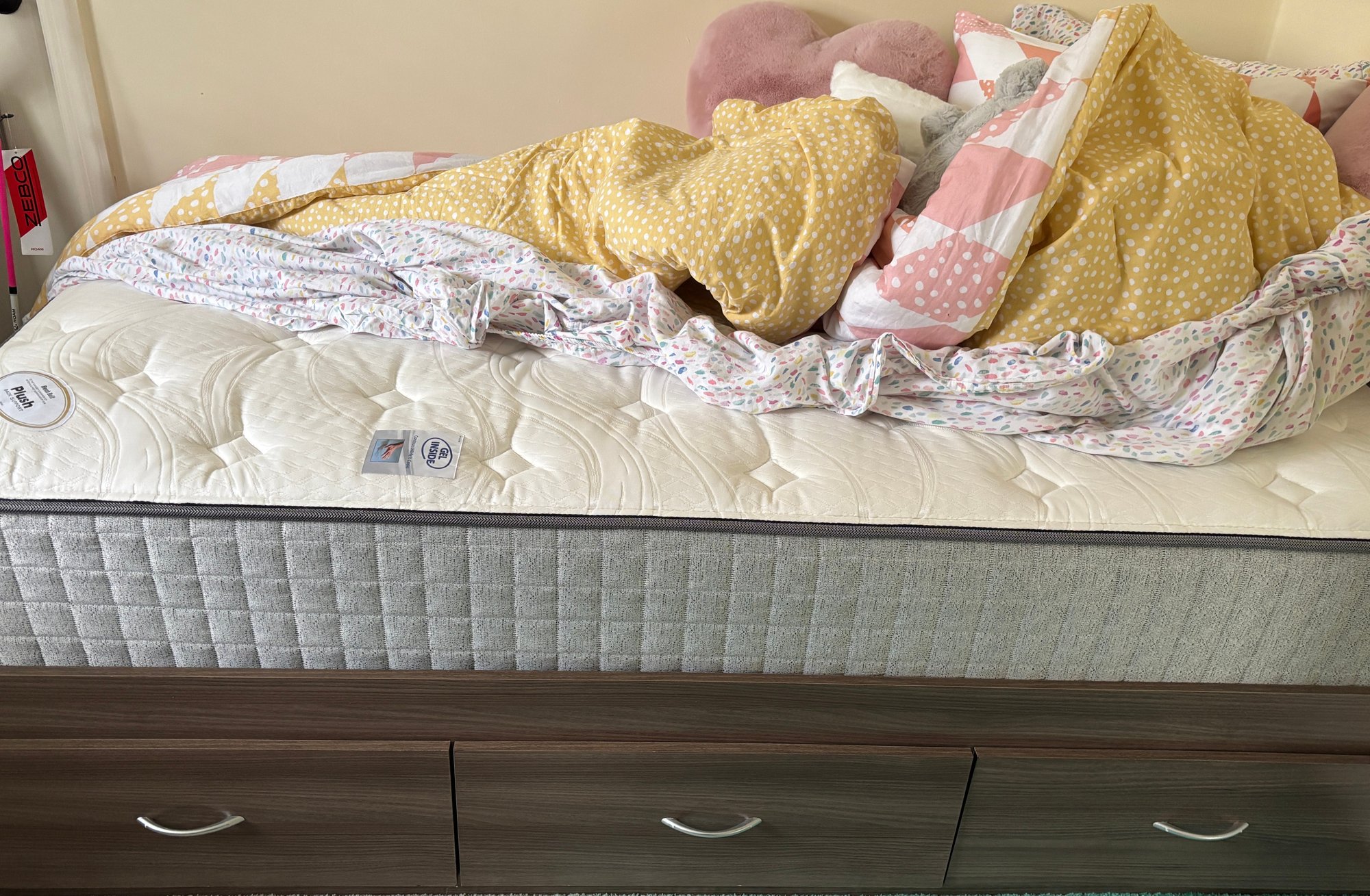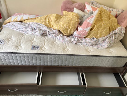 42 1/2 inches deep by 76 1/2 inches long by 24 inches high with the mattress