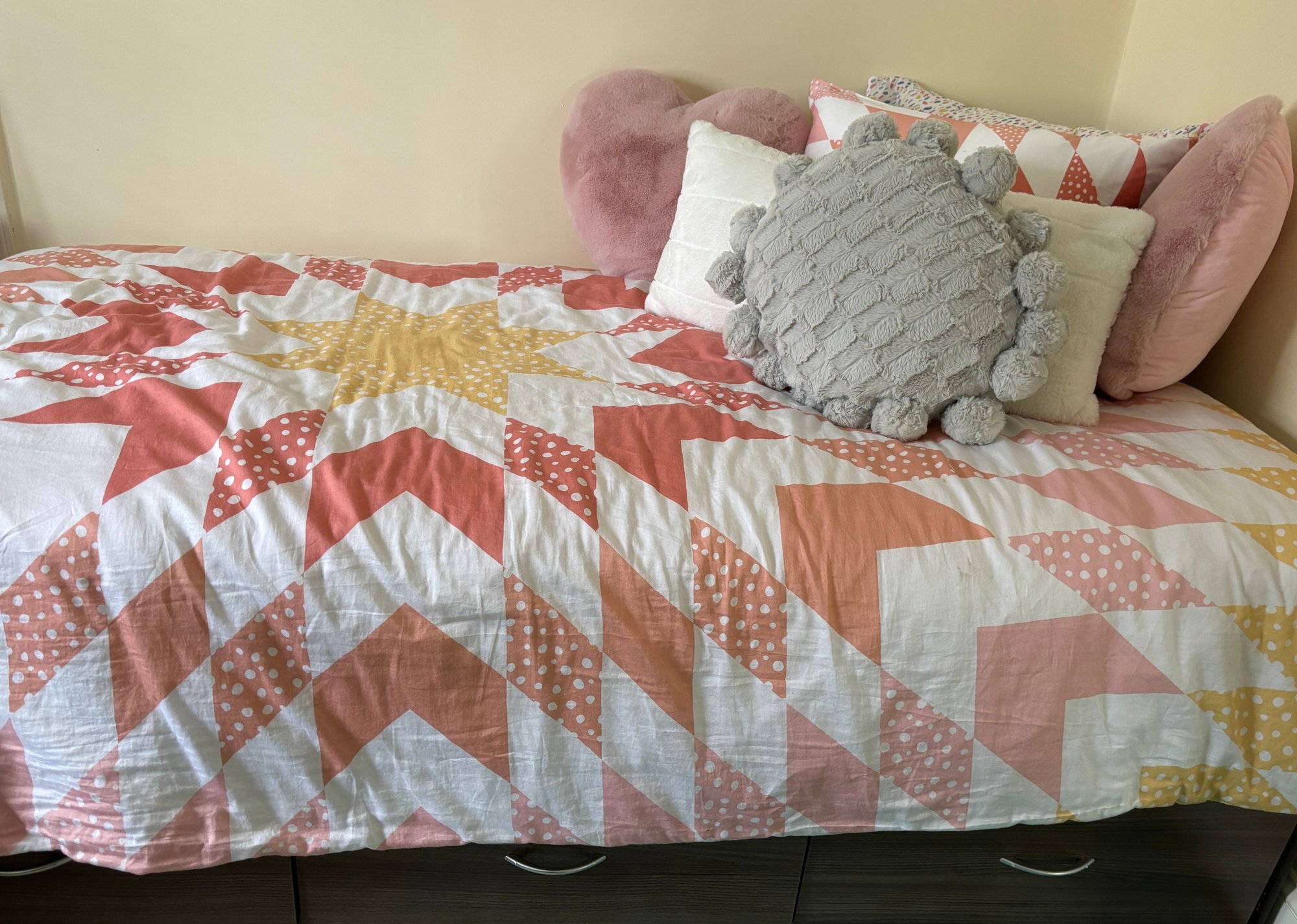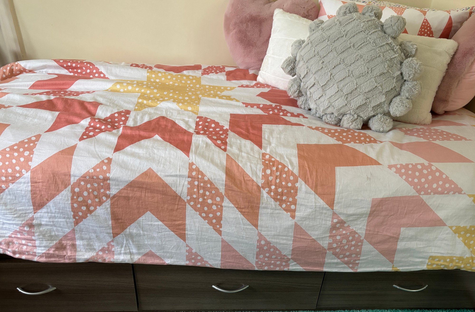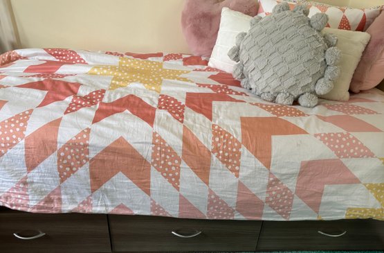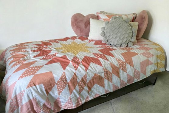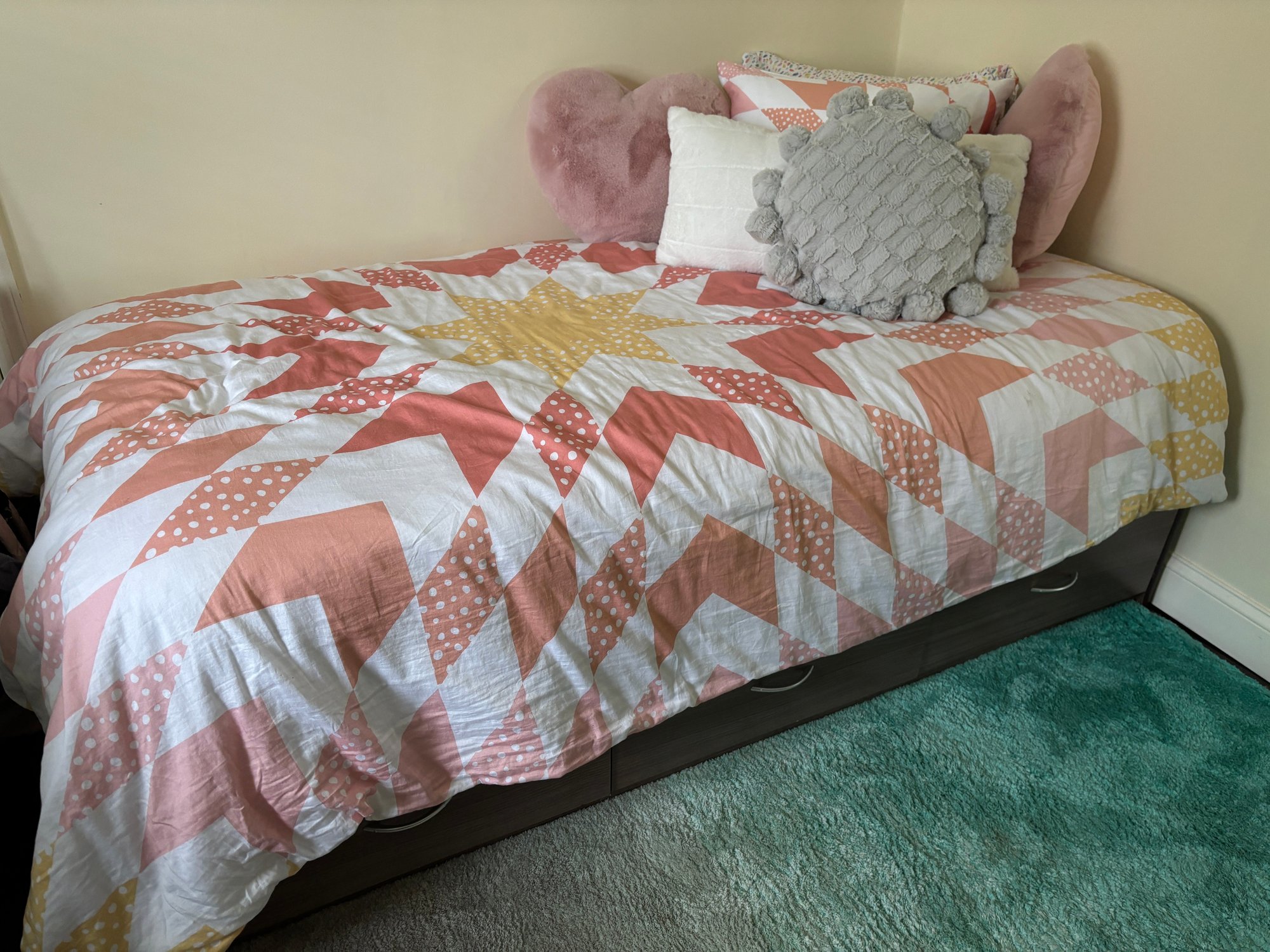 42 1/2 inches deep by 76 1/2 inches long by 24 inches high with the mattress