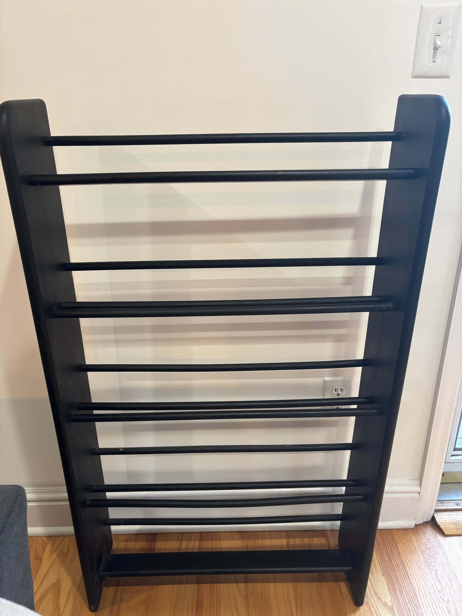 Shallow shelves help contain media such as CDs, DVDs books, etc.