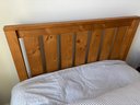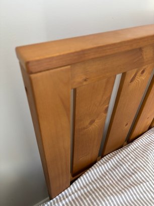 Features a 37-inch high wood-paneled headboard with natural wood knots and patterns.