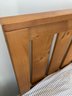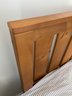Features a 37-inch high wood-paneled headboard with natural wood knots and patterns.