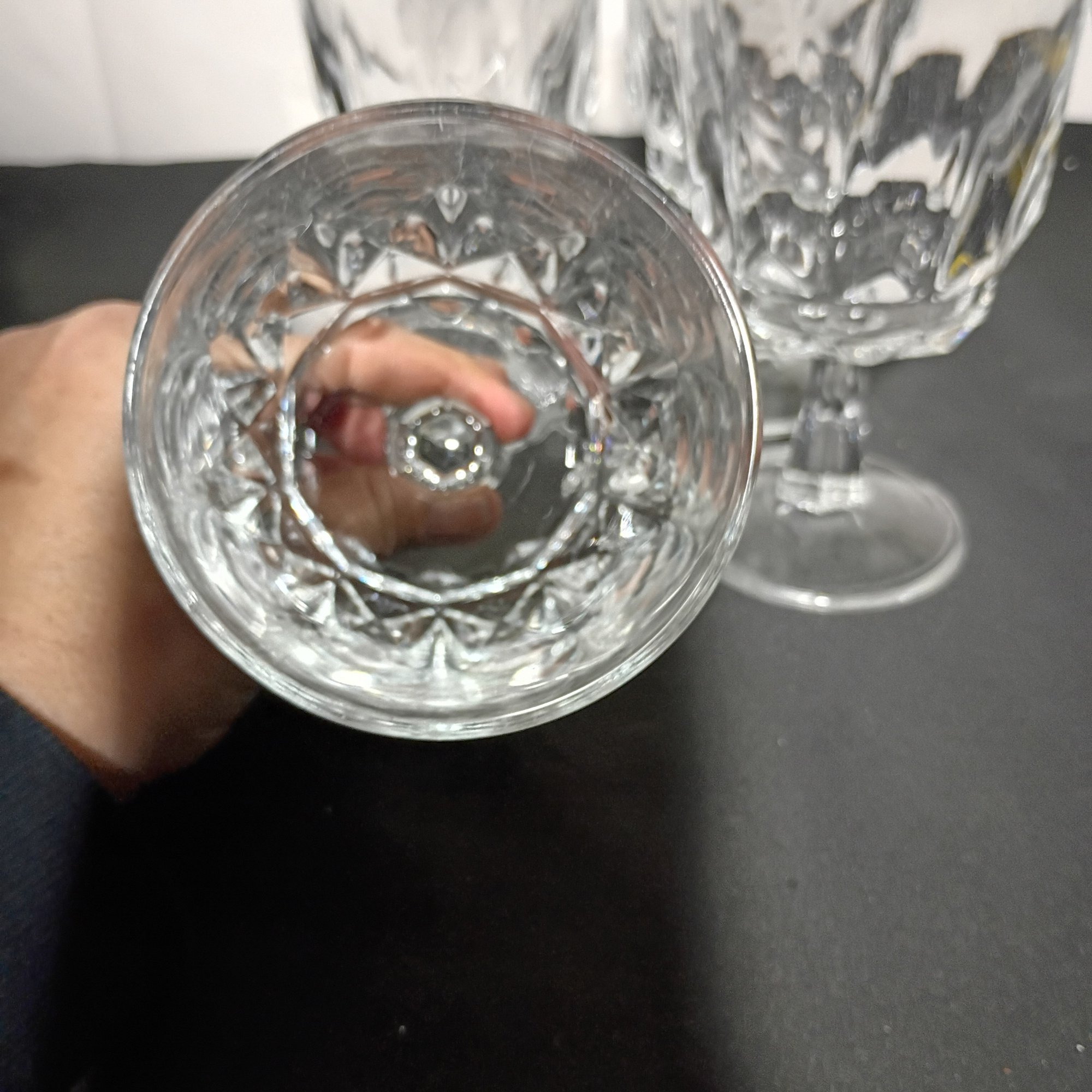 4 PCS Vintage Arcoroc France Wine Goblets In The "Artic" Pattern (Black Light Reactive) (NM)