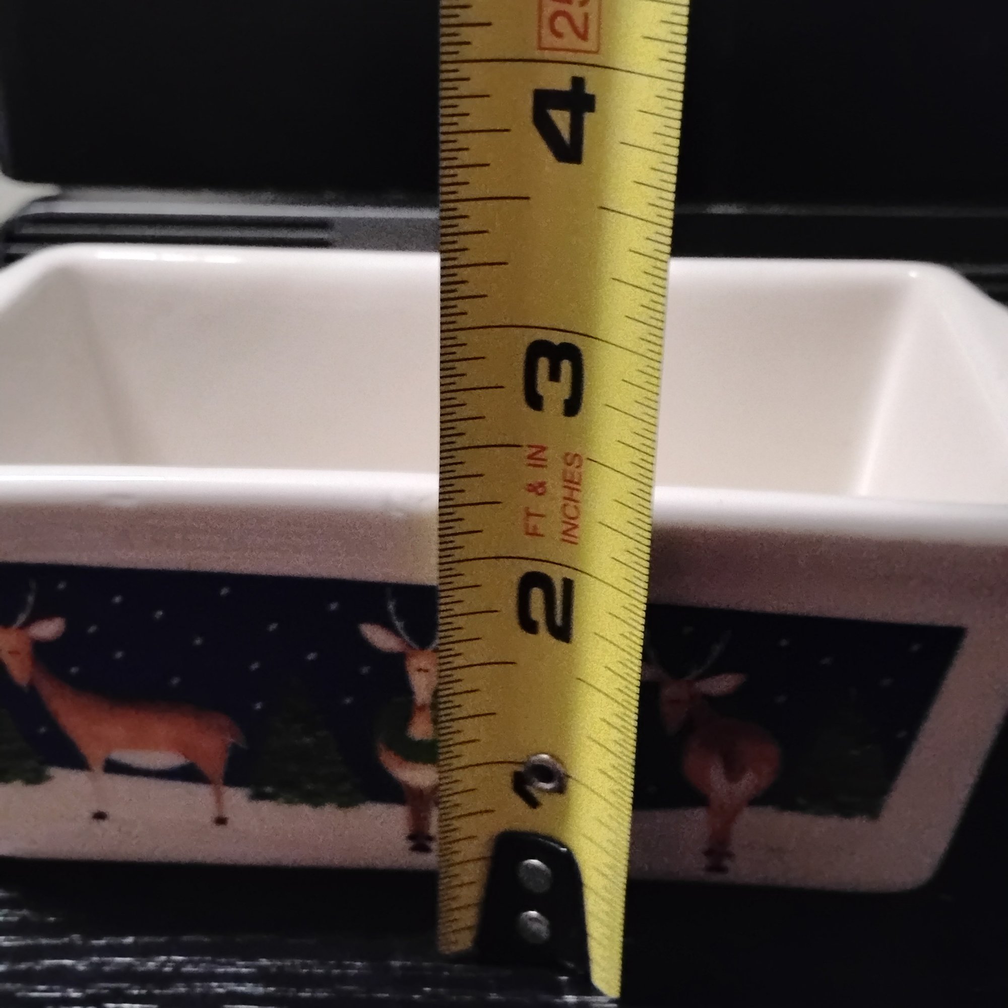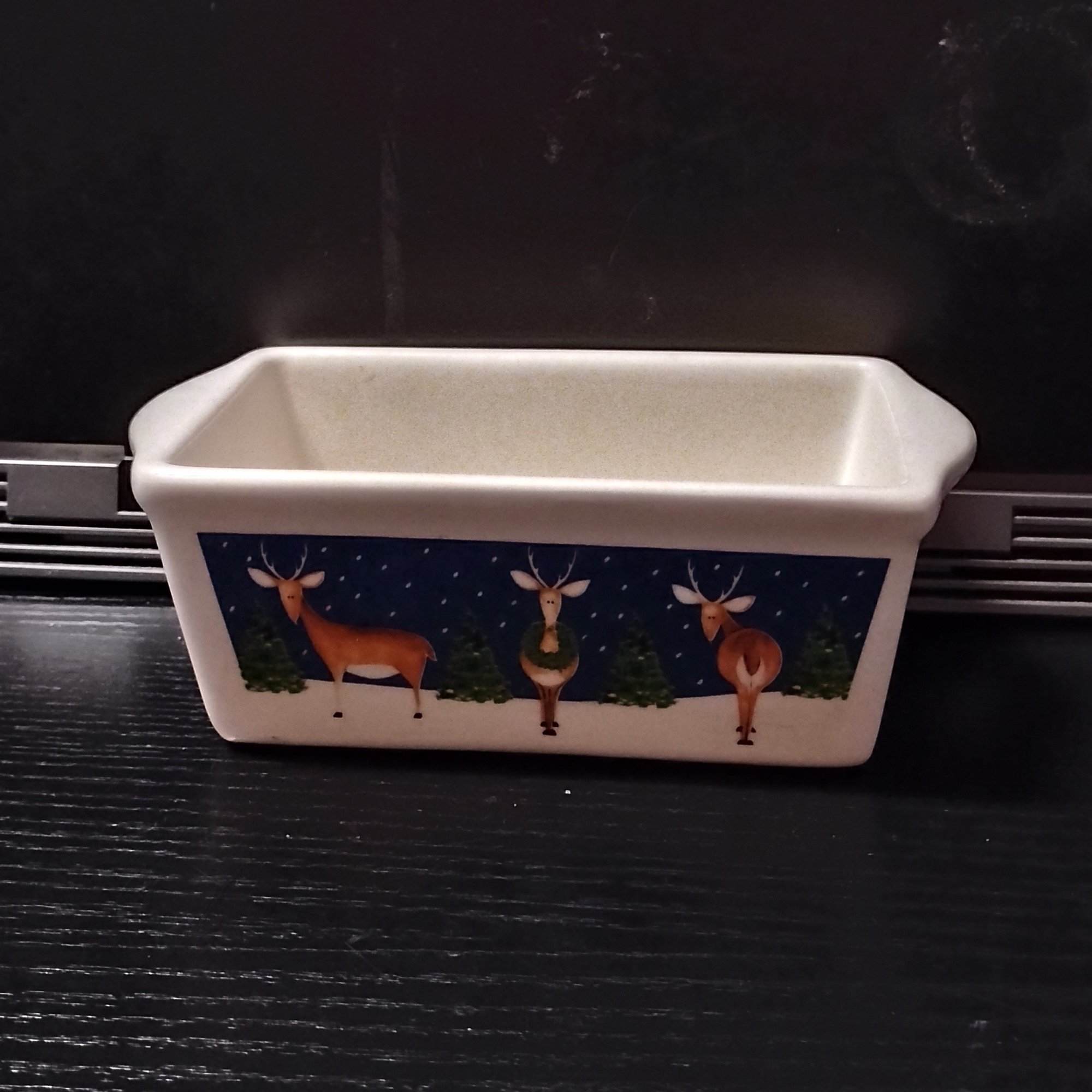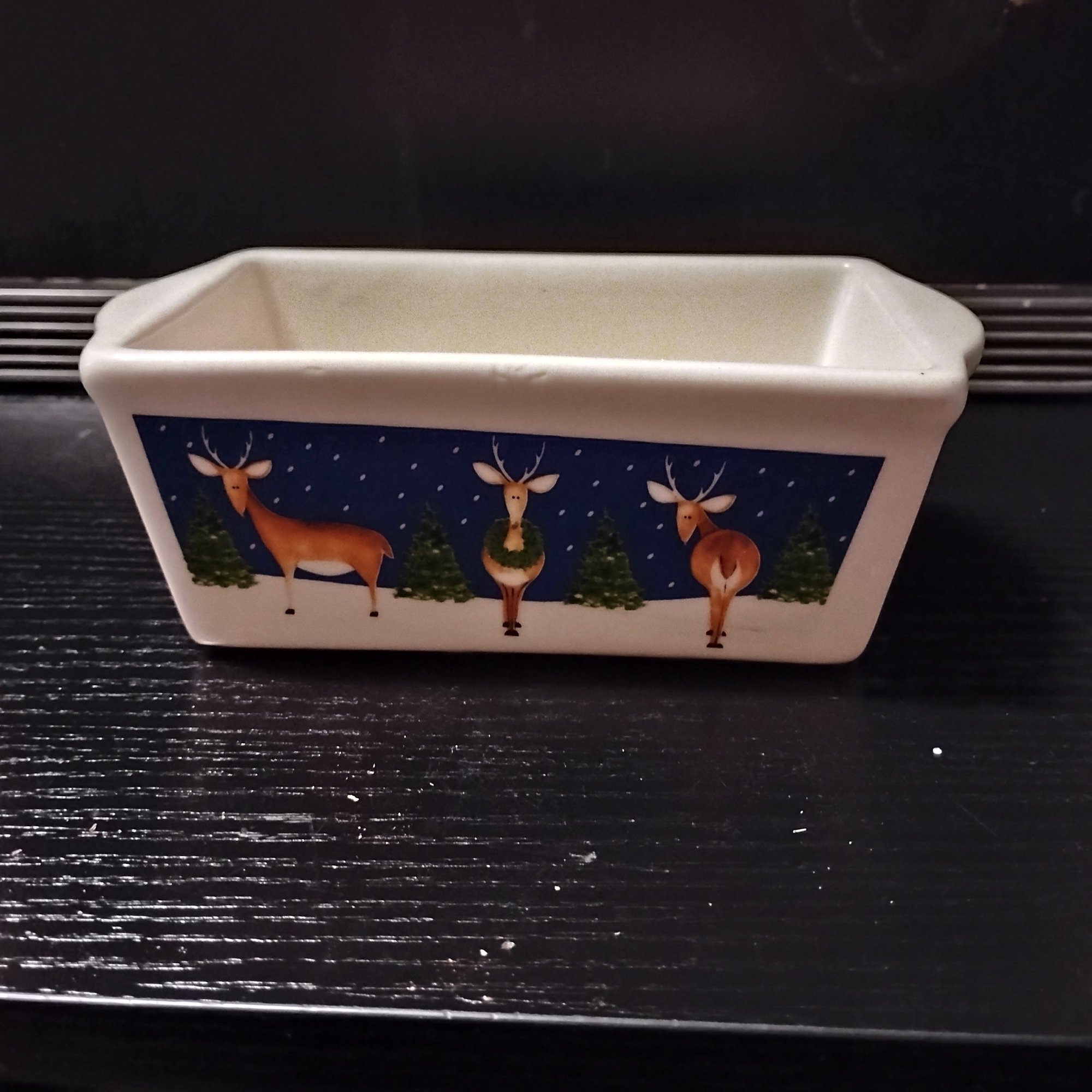 Nantucket Christmas-themed Ceramic Mini Loaf Pan Featuring A Winter Reindeer Design (NM)