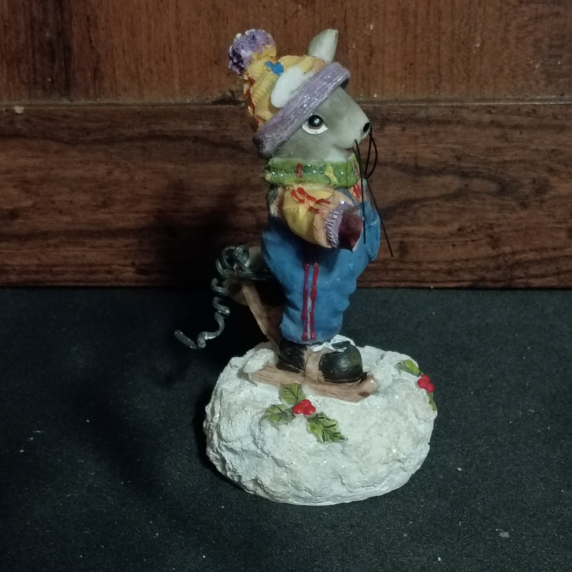 Cute Skiing Mouse Figurine (broken Hand) (NM1)