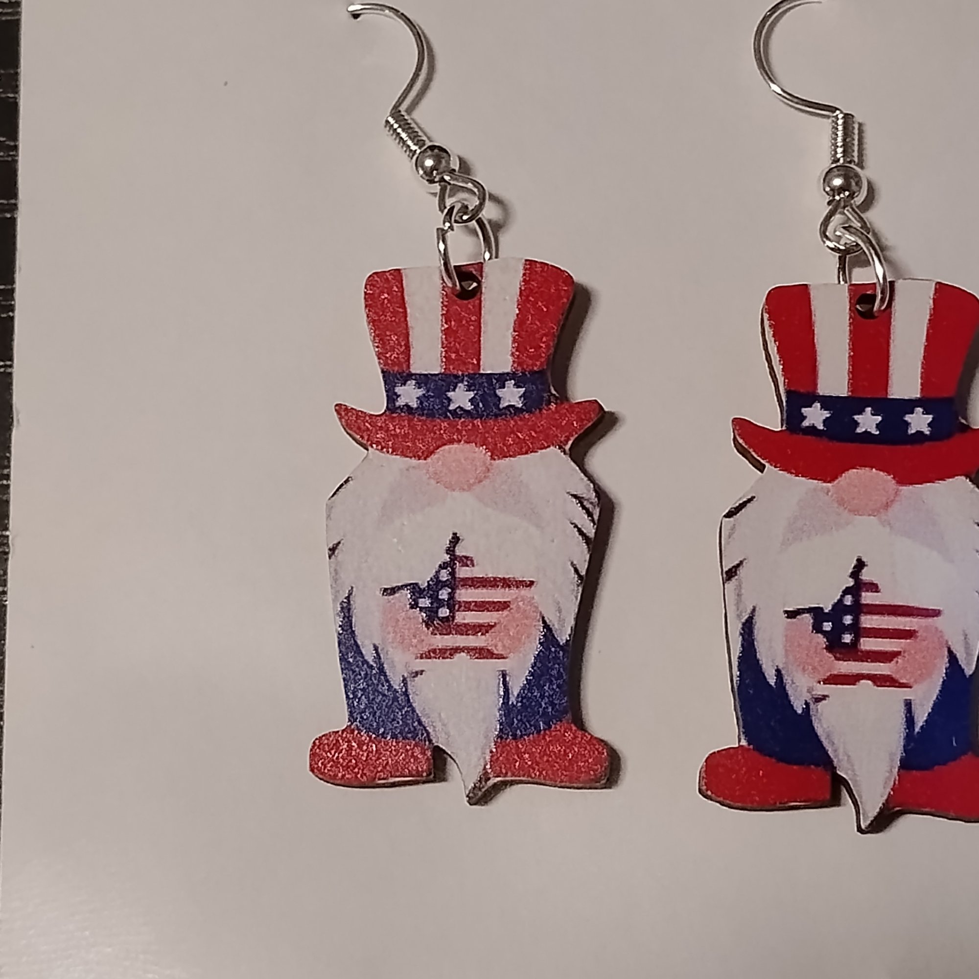 Dangle-style Wooden Gnome Earrings Feature A Fourth Of July Design (NM)