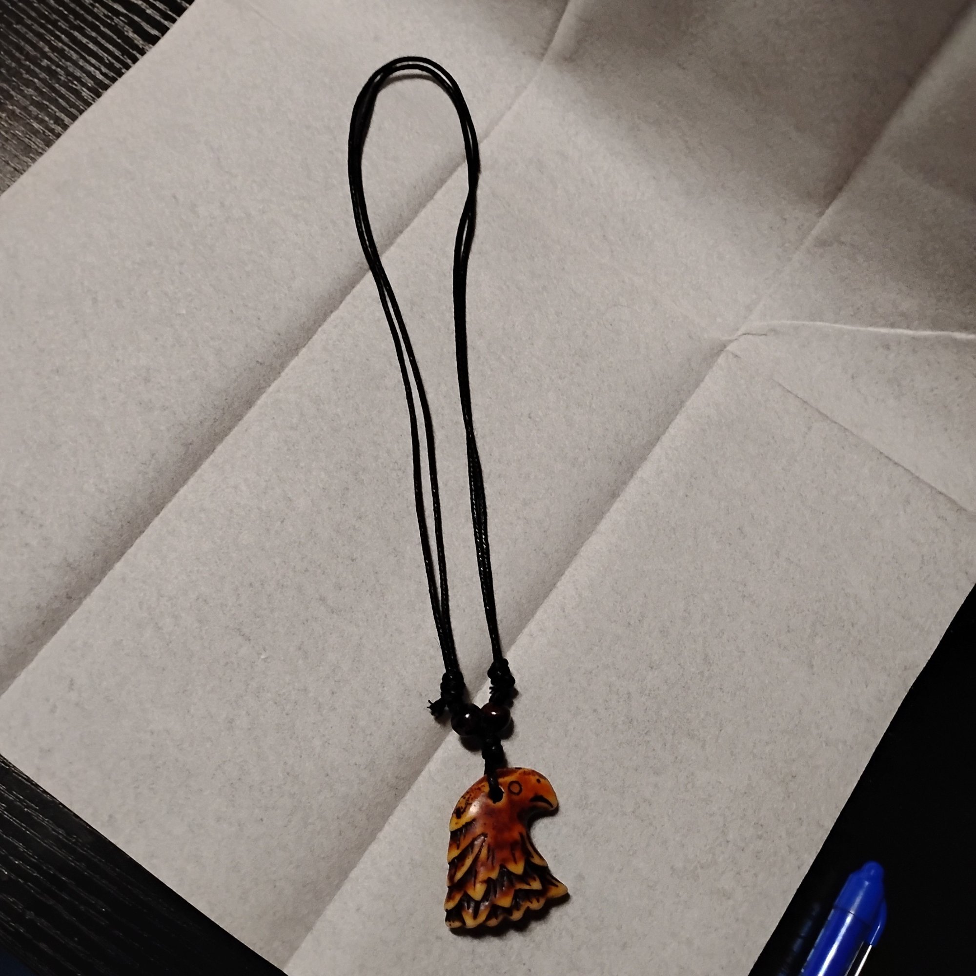 Eagle Head Pendant Necklace, Crafted From Resin To Mimic Carved Bone Or Coconut Shell (NM)