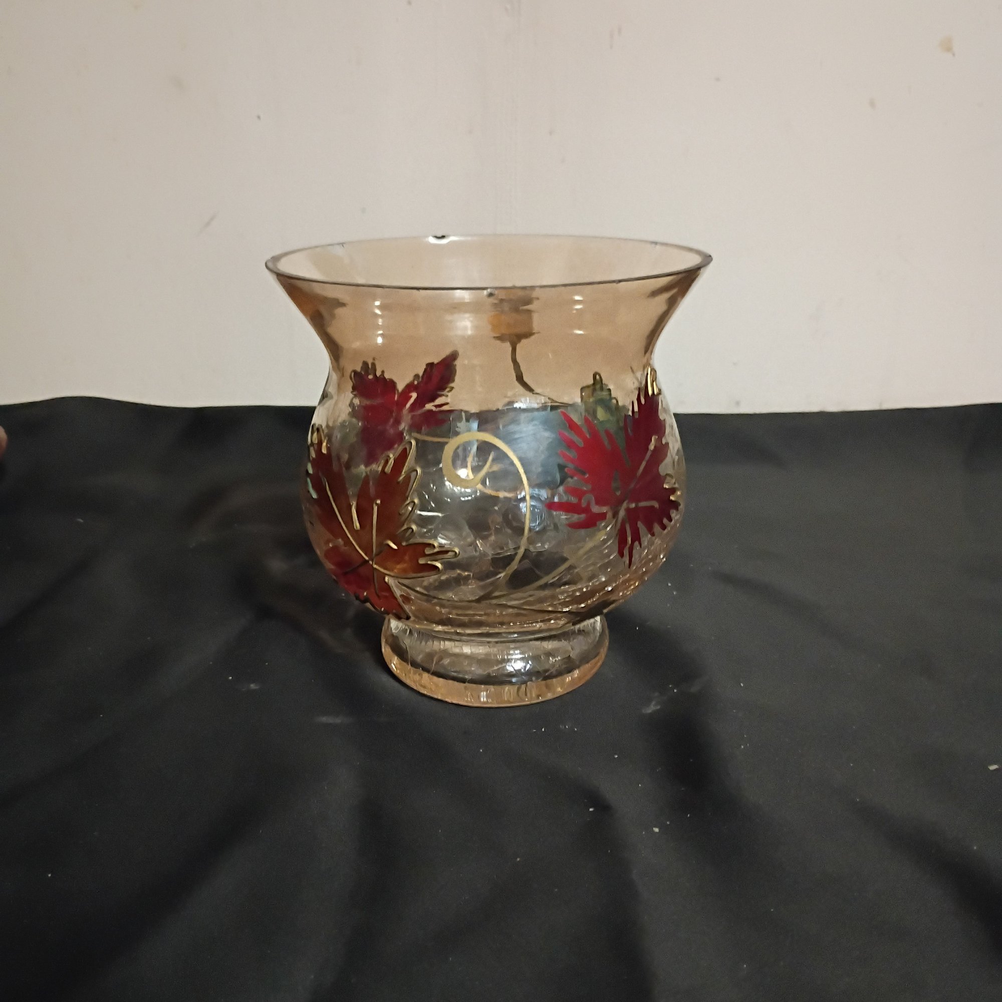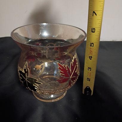 Hand-painted Glass Vase Or Votive Holder Often Styled As A Centerpiece For Fall-themed Dining Table Decor (NM)