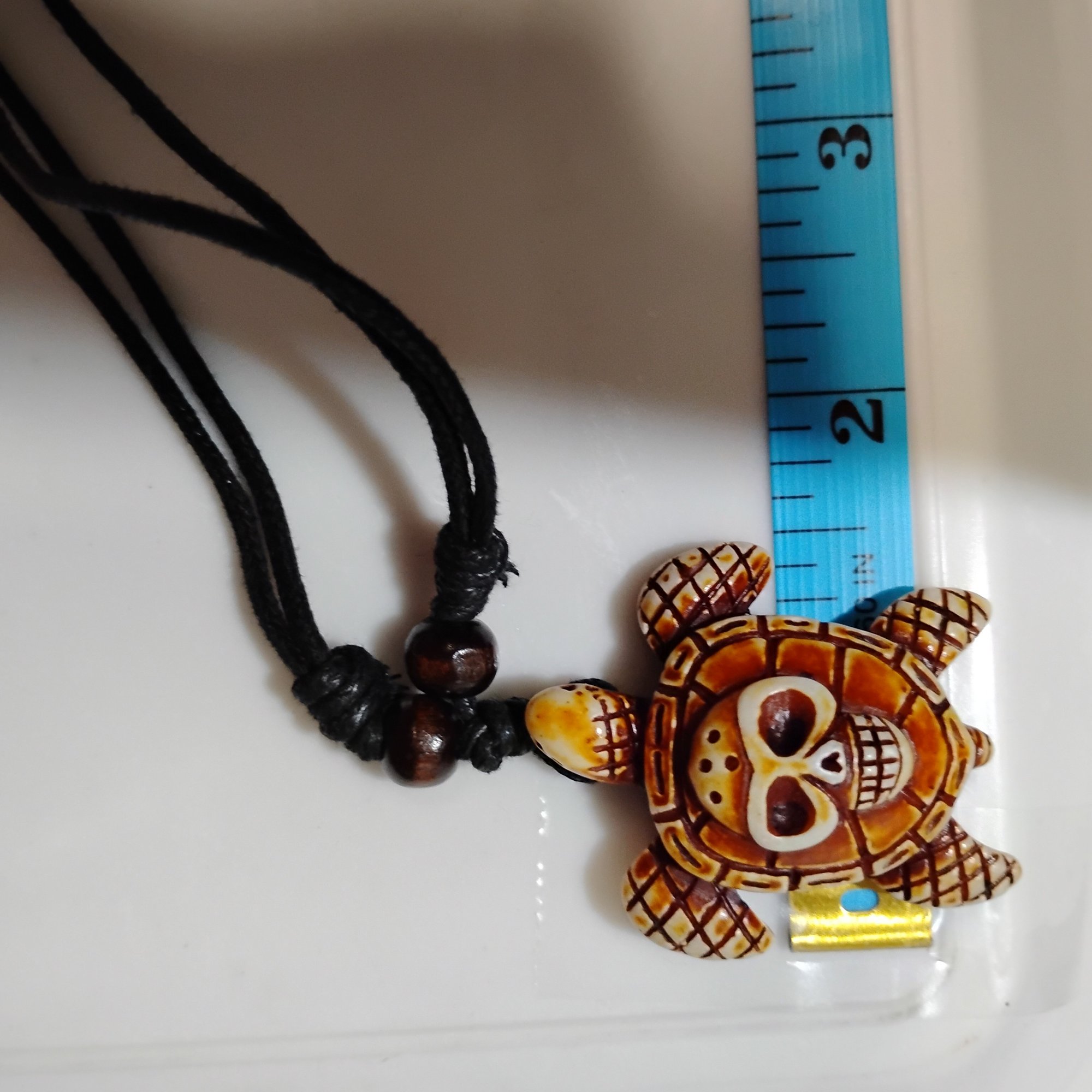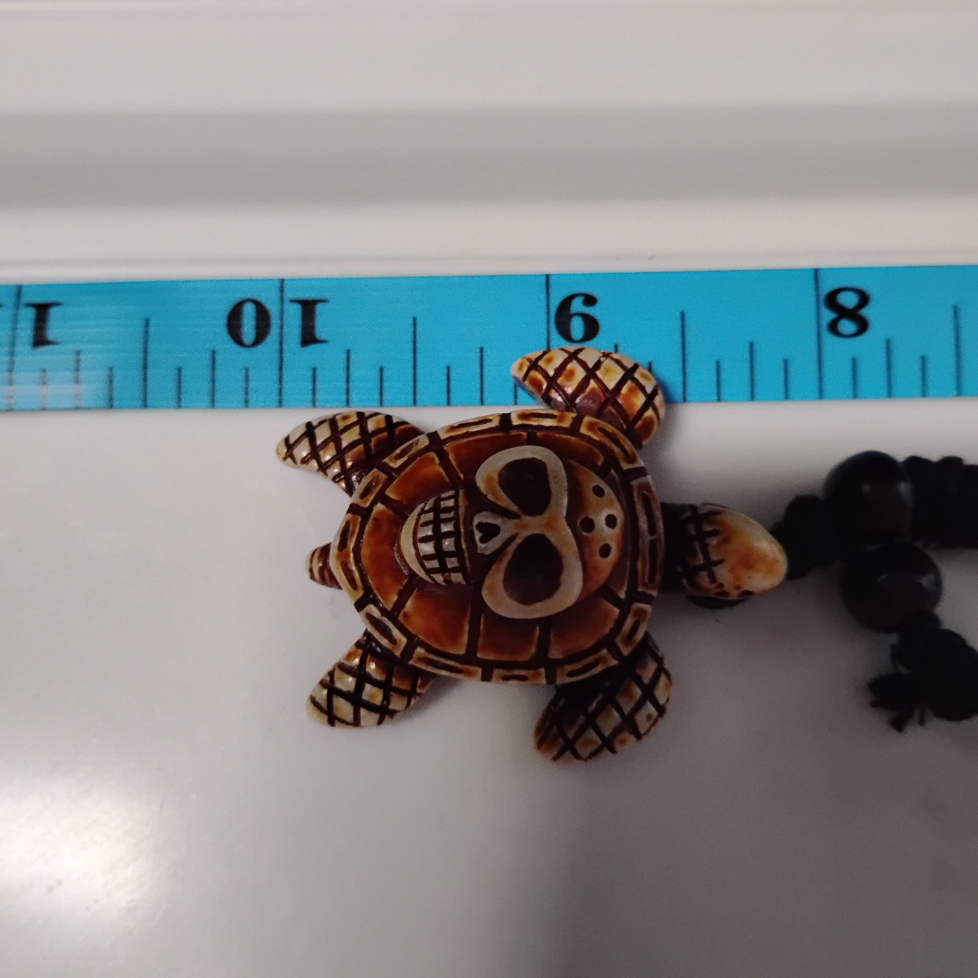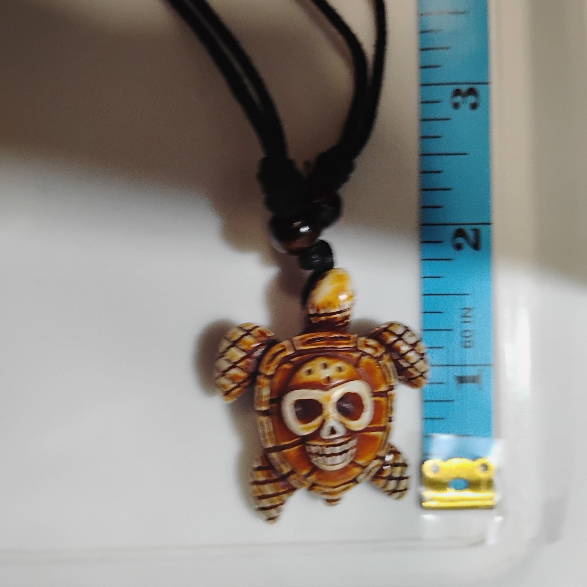 Hawaiian-style Sea Turtle Pendant Necklace Features A Carved Skull Design On The Shell And Made In China (NM)